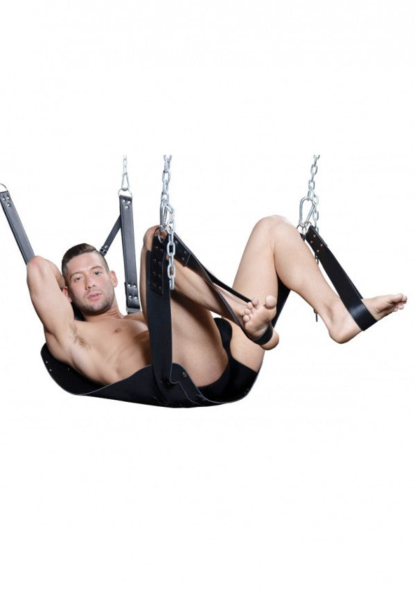 Questa squisita imbragatura bondage vi permette di accedere al vostro partner mentre è sospeso in aria, aperto e in attesa di voi. Il materiale in pelle è pesante, pur mantenendo un prezzo accessibile agli appassionati di bondage! L'imbragatura permette al partner di sdraiarsi e di mettere i piedi nelle staffe incluse.