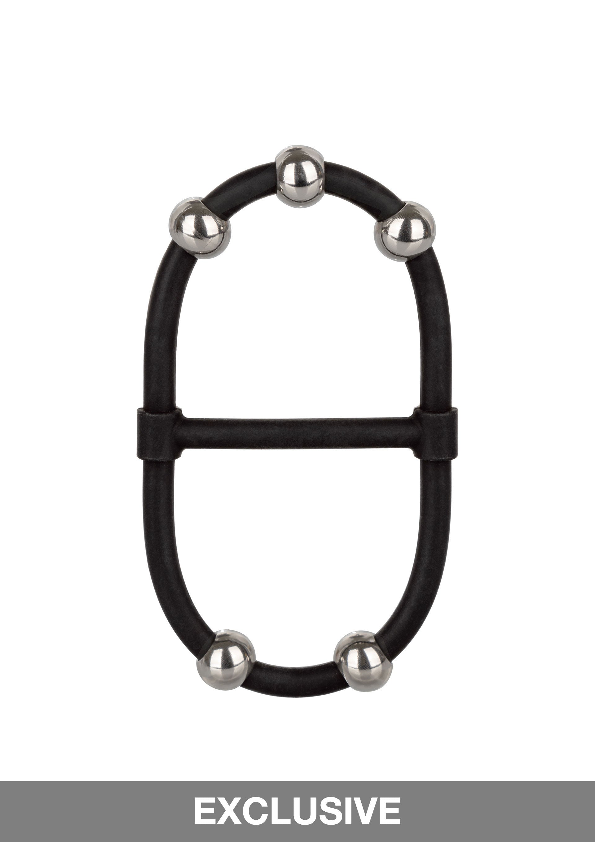 Realizzato per migliorare, intensificare e intensificare l'estasi ogni volta che indossi il doppio silicone Maximizer con perline d'acciaio. Il doppio anello amplificatore in silicone robusto ma elastico fornisce supporto mentre le perline di piacere mobili in acciaio entusiasmano te e la persona amata. Attendo con ansia un'esperienza di piacere esplosiva con ogni movimento stuzzicante delle sfere del piacere in acciaio con posizionamento regolabile e mobile. Questo anello forte e di supporto vizierà il tuo uomo con maggiore resistenza, circonferenza e sensibilità, mentre puoi goderti la sua maggiore resistenza e circonferenza, le stimolanti perline di stimolazione ti stuzzicano in un paese delle meraviglie orgasmico.