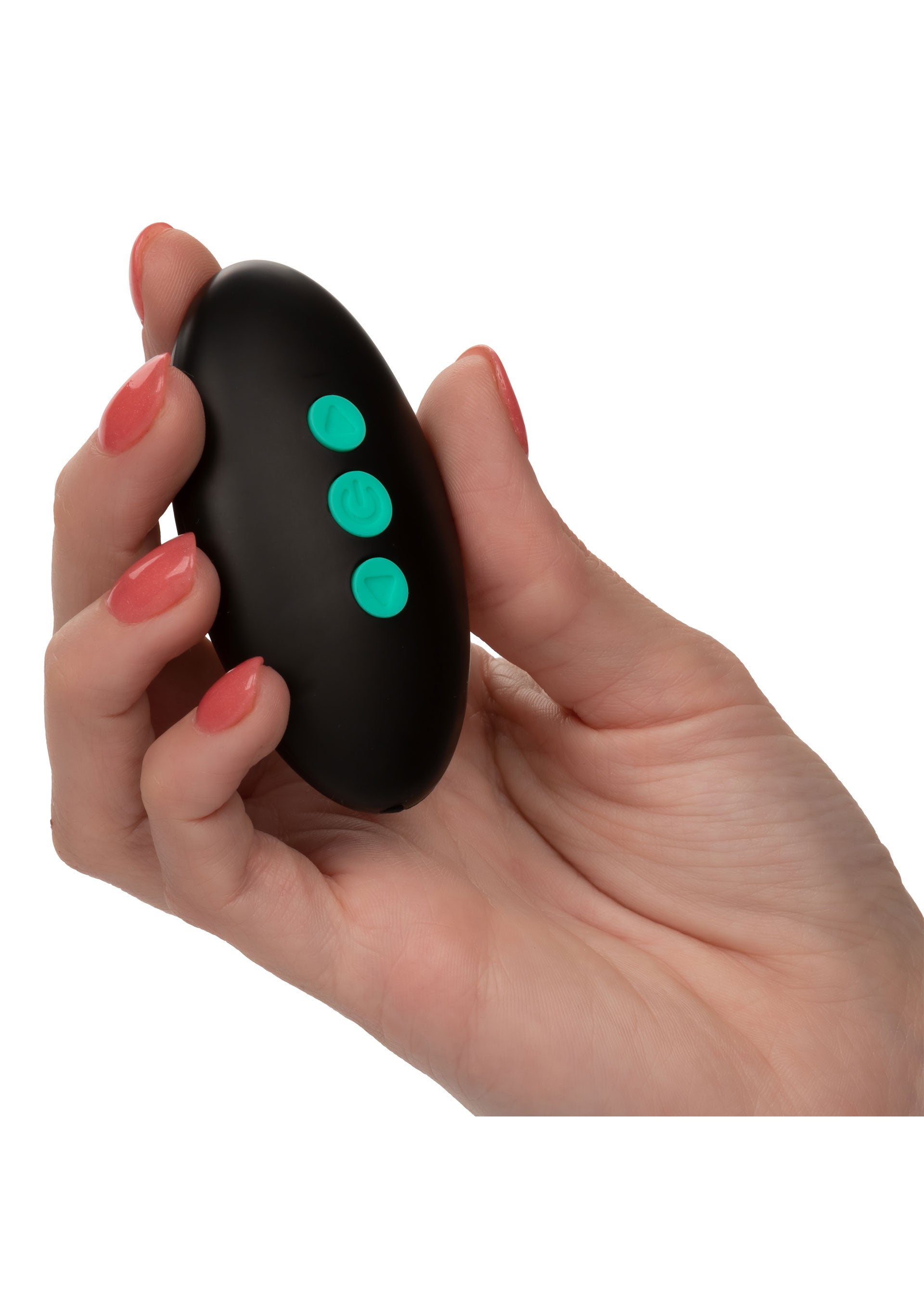 Mentre il pulsante facile controlla l'intensità e l'elegante stuzzicatore vi dà la stimolazione che desiderate, il chip di memoria all'avanguardia integrato ricorda come vi piace, partendo dall'ultima funzione utilizzata. Fate un tuffo in questo anello impermeabile e godetevi le potenti vibrazioni nella vasca da bagno, nella doccia o nell'idromassaggio, oppure utilizzate il telecomando giocoso per godere di un raggio d'azione fino a 5 metri!