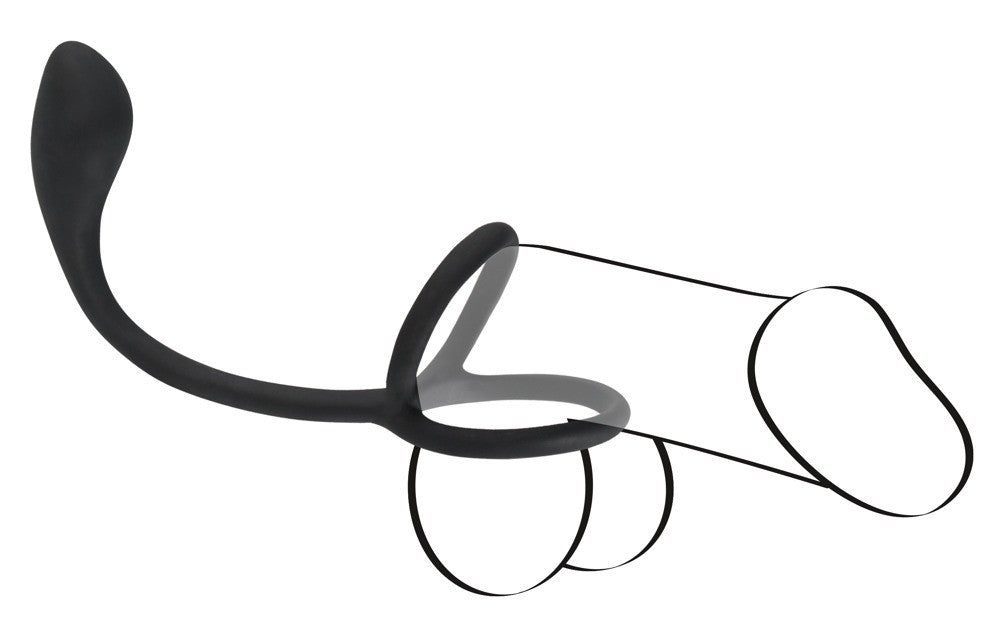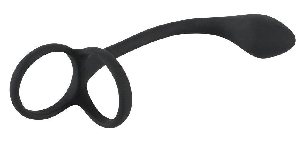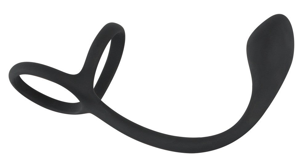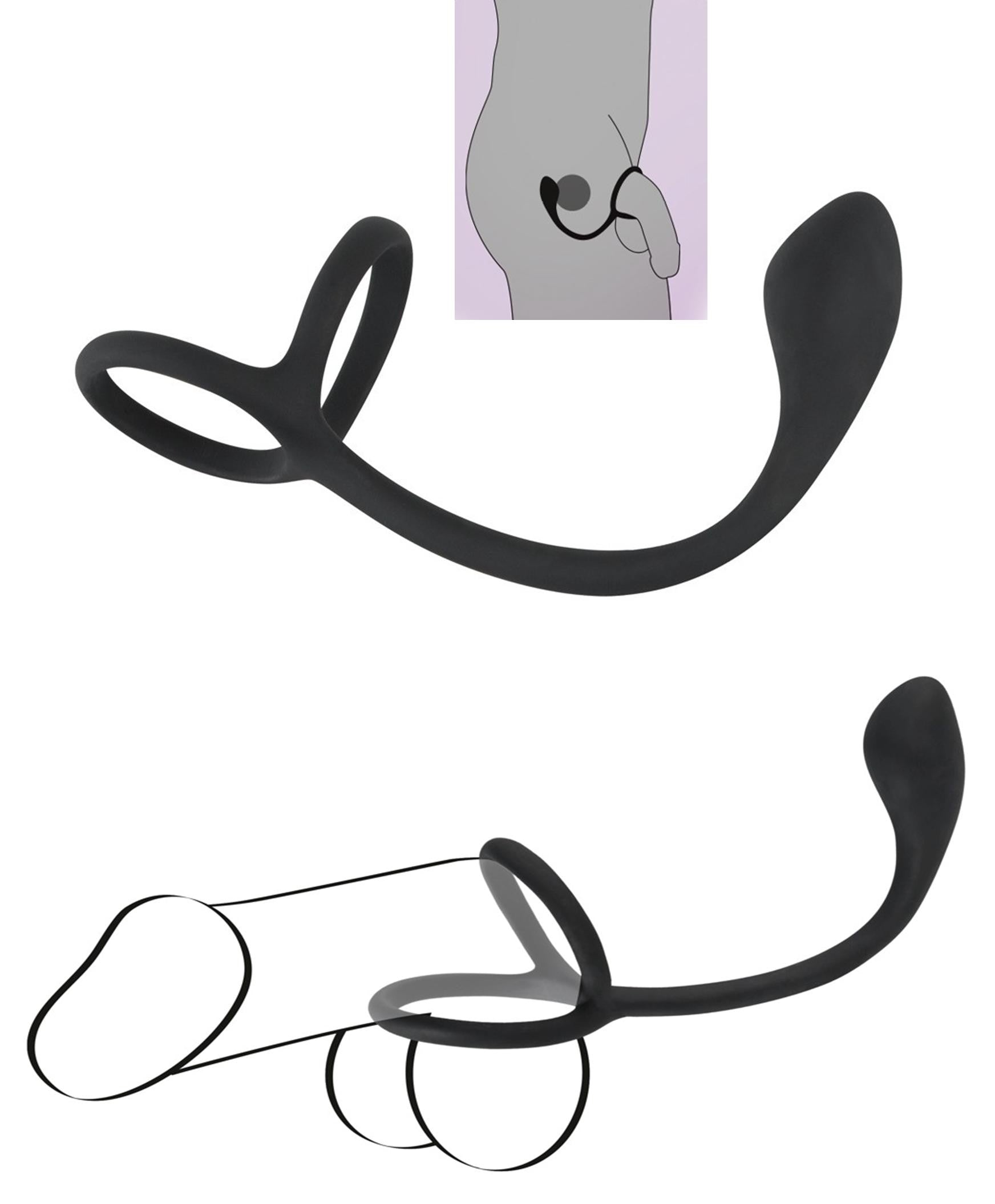 Anello fallico doppio sex toys con fallo anale in silicone nero black cock ball ring plug