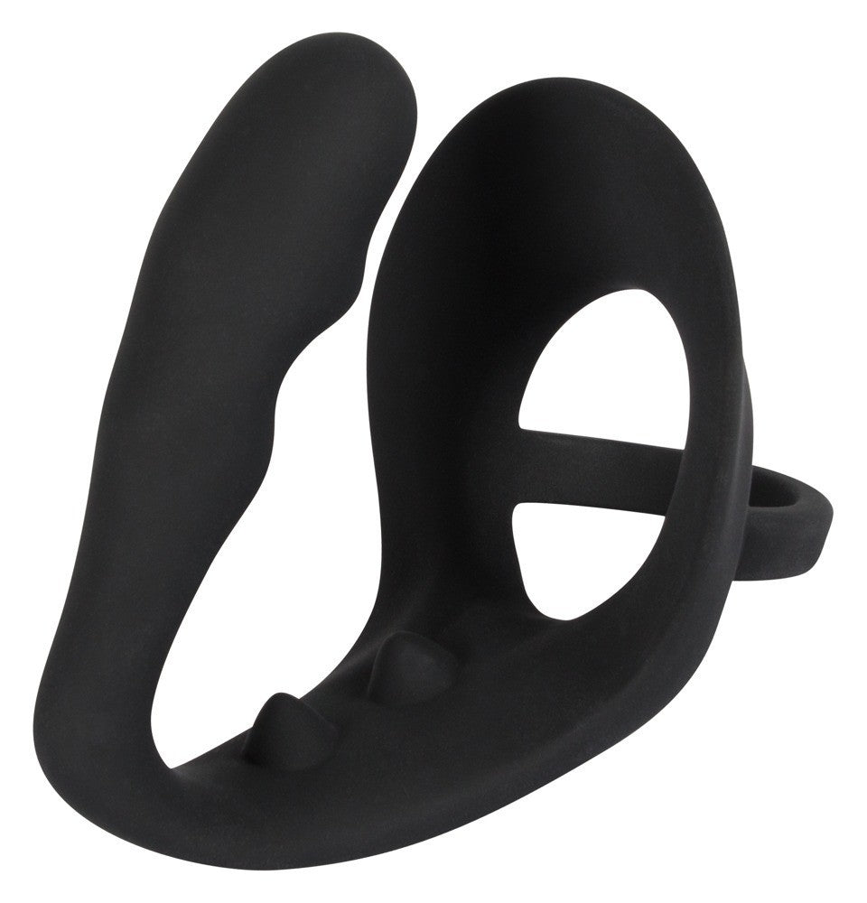 Per momenti salienti estatici! Questo anello nero non solo segna con un plug anale aggiuntivo, ma anche con un ponte perineo attraccato in modo attraente. Piacere puro!