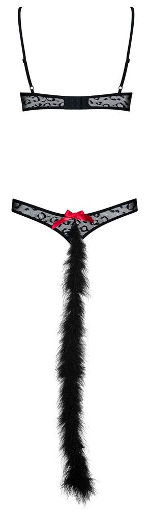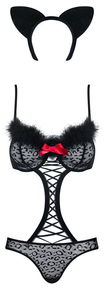 Vista posteriore in due pezzi! Il corpo con la coda rimovibile e la fascia per i capelli con le orecchie invita a giochi di ruolo animaleschi! Cinghie regolabili. Nero con stampa leo. 94% poliammide, 6% elastan.