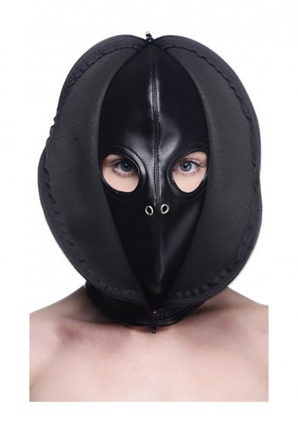 Oscurate i sensi con questo cappuccio bondage con zip frontale! Questo cappuccio nega i sensi e acceca il vostro sub con facilità, rendendo semplice il gioco di oggettivazione. Con due fori per gli occhi e un paio di fori per la respirazione nel cappuccio interno, il vostro partner potrà vedere cosa sta per accadere, ma voi dovrete chiudere la zip sul davanti per togliergli la visuale.