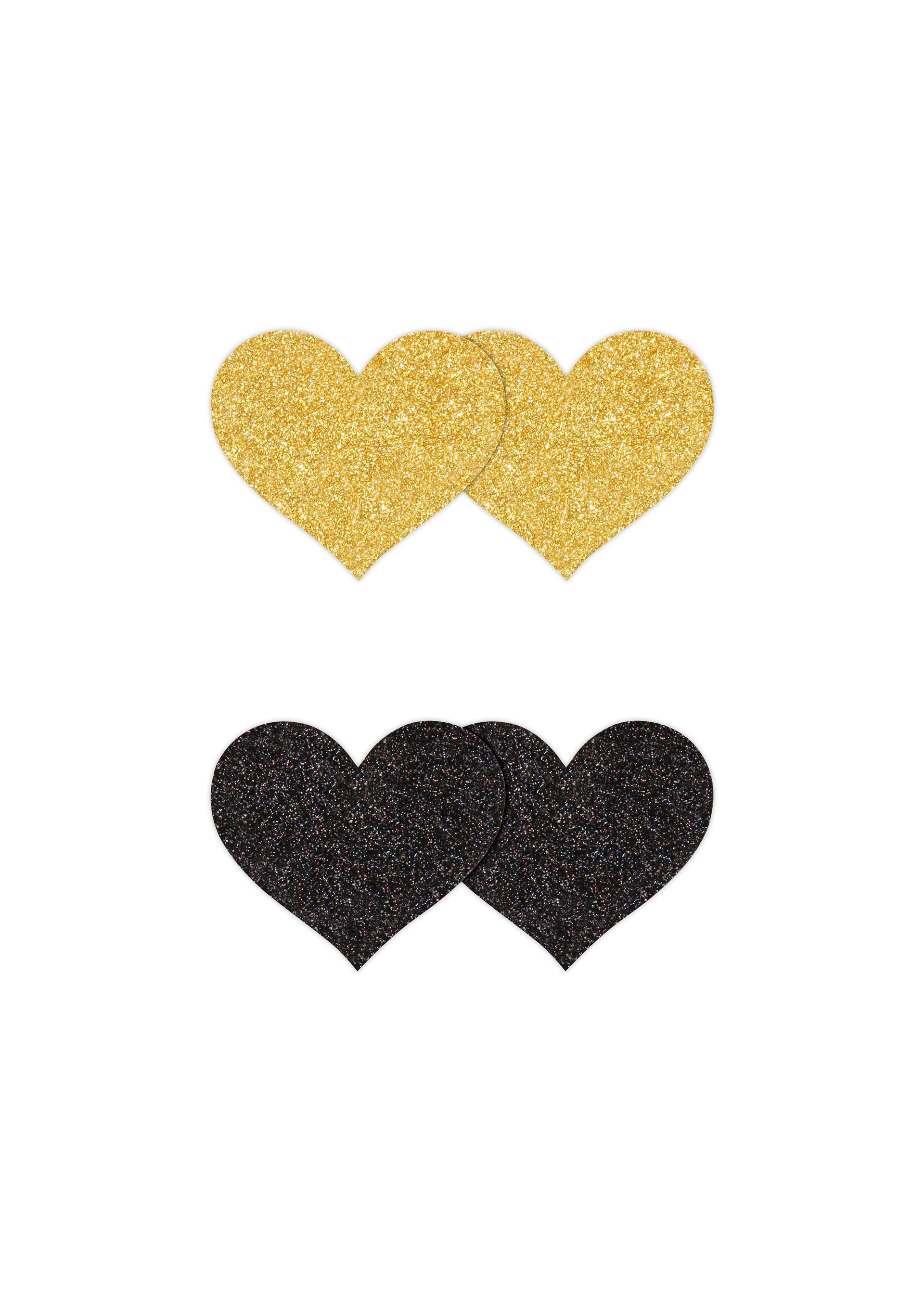 Copricapezzoli a forma di cuore Pasties Glitter Hearts 2 Pair black & gold