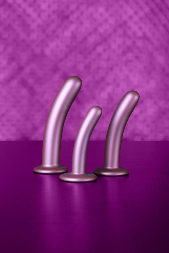 Il dildo in silicone per punto G Smooth da 7 / 17 cm, con la sua forte ventosa e il bel colore metallico, è in una classe a sé stante. Che tu stia giocando da solo, con il tuo partner o addirittura usandolo con uno strap-on, esplora nuovi piaceri con questi bellissimi dildo in silicone premium e silicone liquido di Ouch! Si abbinano perfettamente alle mutandine Ouch Strap-on.