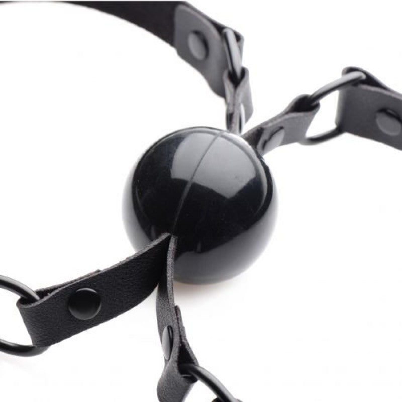 Gag a doppia bocca, un'unica pallina di silicone che i sottomessi possono condividere. Doppio cinturino ad avvolgere entrambe le teste per adattarsi e allacciarsi dietro collo. Le cinghie sono realizzate in ecopelle resistente e confortevole. Misure: il diametro della sfera è di 4,50 cm. Le cinghie si regolano su una circonferenza di 56 cm.