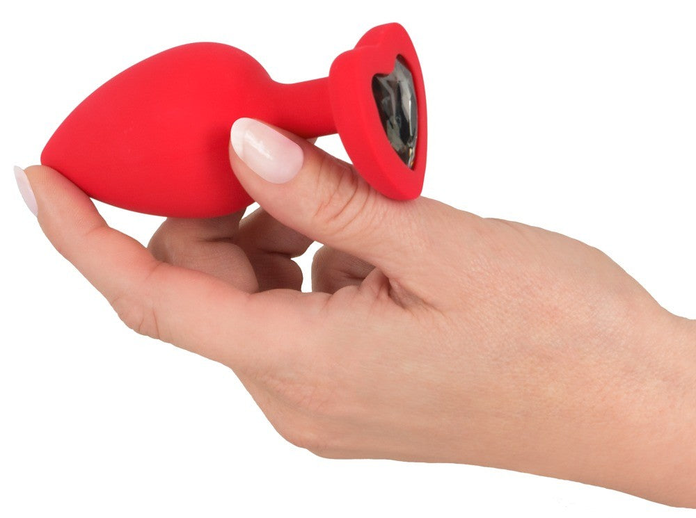 Lusso e glamour - e divertimento - per la porta sul retro! Classico butt plug con un chiaro bordo in pietra preziosa all'estremità a forma di cuore estetico. Questa sensibile spina può essere meravigliosamente integrata nel fare l'amore sia dal nuovo arrivato che dall'intenditore anale e offre al partner una vista ammaliante. La pietra è rimovibile. Lunghezza totale 9,3 cm, lunghezza di inserimento 8 cm, Ø 4,1 cm. Silicone con rivestimento in PU, acrilico.