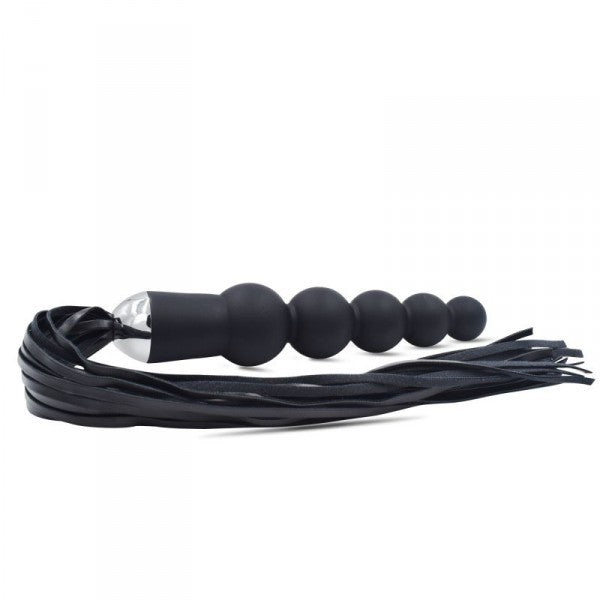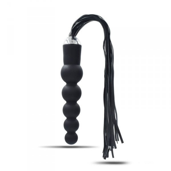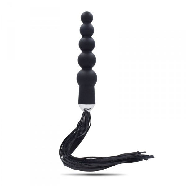 Cos' è? E’ un dildo anale realizzato in silicone di qualità e senza ftalati, dalla eccitantissima forma che ricorda un susseguirsi di perle, con alla base un frustino in ecopelle vegan a frange molto chic, che permette di ricevere anche delle frustate che, a seconda dell’energia impiegata, possono essere dolci o vibranti. A Cosa serve? Con questo dildo con frusta potrete ricevere una stimolazione anale efficace mentre la sua frusta dall’impronta BDSM, con la sua comoda impugnatura, sarà utilizzabile sulla pelle del partner sia per dolci carezze in odor di tickling (solleticanti) che per le più marcate frustate capaci di evocare le sculacciate dello spanking. Le frange della frusta sono versatili nell’utilizzo, adatte a pratiche soft sadomaso ma anche per saggiare frustate ben più forti. Date le sue dimensioni interessanti, il dildo non sdegna di certo degli utilizzi diversi, come ad esempio penetrazioni di tipo vaginale. Lunghezza frusta: 30 cm Come si usa? Il prodotto è facile da usare. Basta inserirlo nella zona erogena anale, magari facendosi aiutare da un lubrificante ad acqua, immancabile. La punta ergonomica e affusolata semplifica e rende comode le penetrazioni. Oppure si possono preferire le sensazioni “Dark” che permette di ricevere il frustino, abbandonandosi a ricevere delle sonore frustate. Ricordarsi di igienizzare sempre il sex toy dopo ogni utilizzo