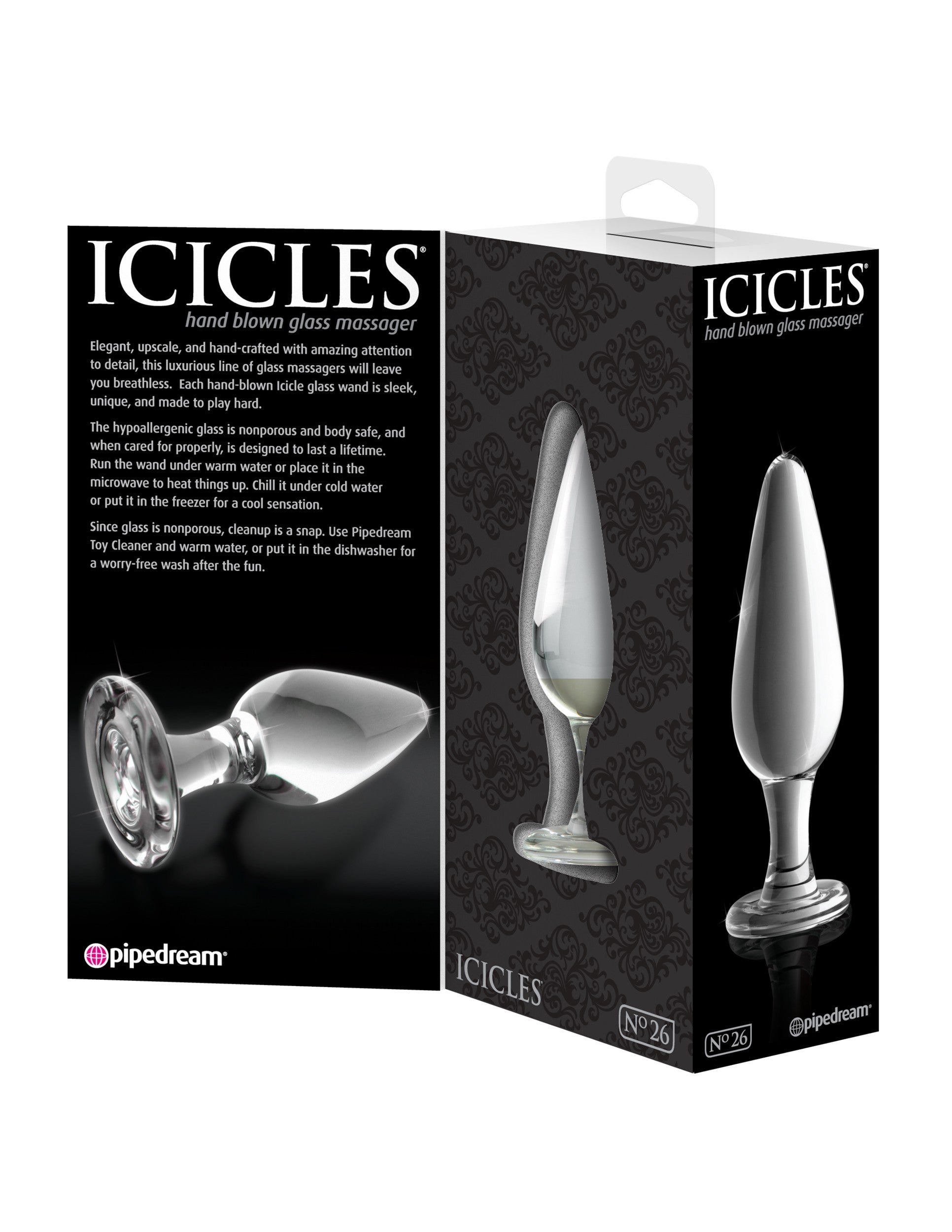 Elegante raffinatofallo anale plug in vetro, realizzato a mano con incredibile attenzione al dettaglio, la linea di lusso di massaggiatori in vetro vi lascerà senza fiato! Soffiato a mano, il fallo Icicles è elegante, unico e fatto per giocare duro. Il vetro ipoallergenico non è poroso ed è sicuro per il corpo, e se curato correttamente, è stato progettato per durare una vita. Bagna la bacchetta sotto l'acqua calda per riscaldarlo, o raffreddarlo sotto l' acqua fredda per una sensazione di freschezza.