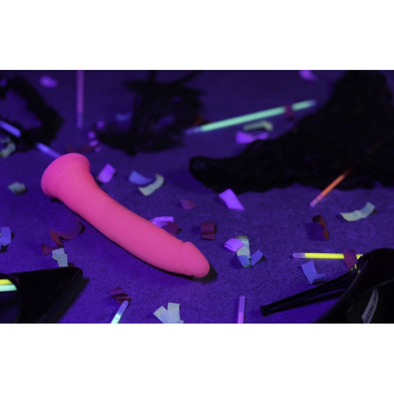 Fallo realistico con ventosa Slim Dildo Suction Cup GitD 15,5 cm Neon Pink