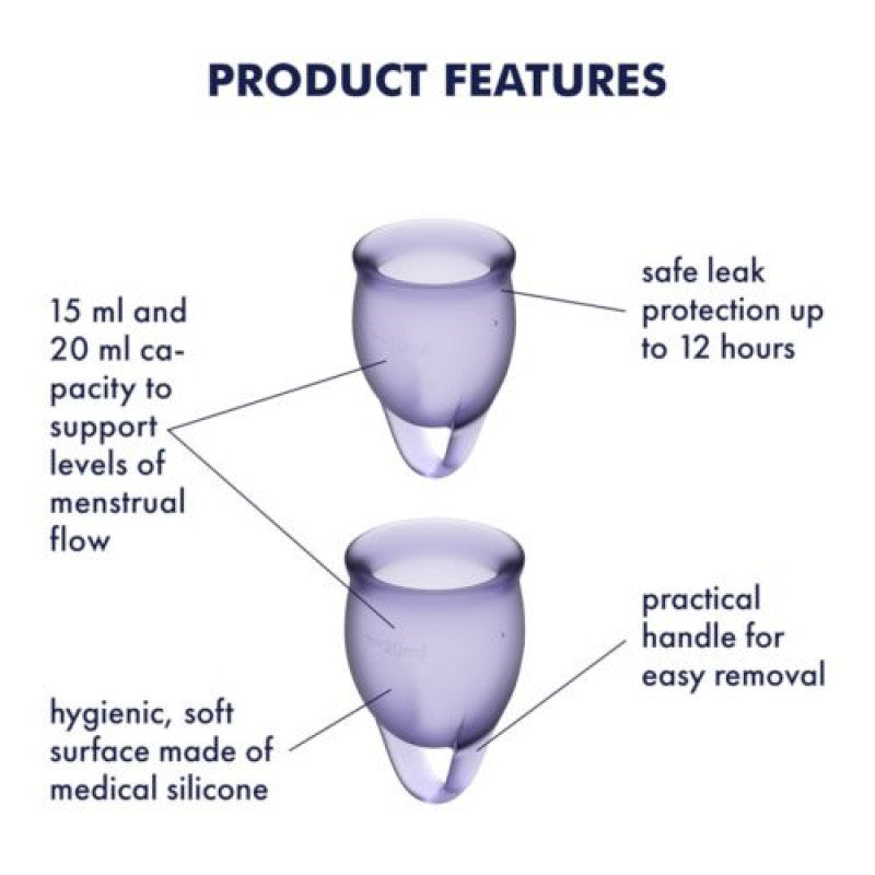 Set da 2 coppette con capacità di 15 e 20 ml, in pregiato silicone medicale ipoallergenico. Ideate per i periodi di ciclo, dai giorni più leggeri a quelli più intensi. Riutilizzabili dopo l'igienizzazione con acqua calda e toy cleaner.