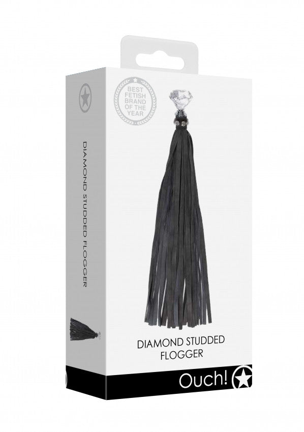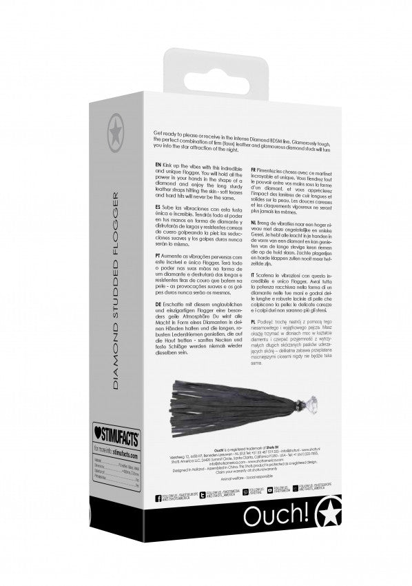 Preparati a dare piacere o riceverlo nell'intensa linea BDSM Diamond. Resistente e alla moda, la perfetta combinazione di solida (finta) pelle e borchie di diamanti eleganti ti trasformerà nell'attrazione principale della notte. Scatena le vibrazioni con questo incredibile e unico Flogger. Avrai tutta la potenza racchiusa nella forma di un diamante nelle tue mani e godrai delle lunghe e robuste lacinie di pelle che colpiscono la pelle: le delicate carezze e i colpi duri non saranno più gli stessi. L'aggiunta perfetta ad un problema molto eccitante: è ora di liberare il tuo lato oscuro.
