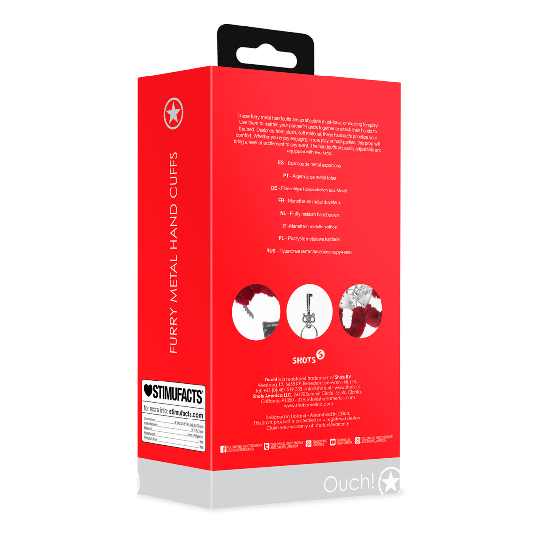 Furry Metal Hand Cuffs - Red