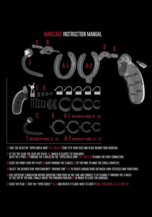 Le Gabbie di Castità Man|Cage sono realizzate in policarbonato di grado alto, un materiale molto leggero, duraturo ed ipoallergenico. La gabbia è costituita da tre parti messe perfettamente assieme. Due perni guida collegano le parti superiori ed il perno ovale collega gli anelli alla gabbia. Un'ampia gamma di anelli in diverse misure e varie distanze ti permetteranno di creare la misura perfetta! Gli anelli sono comodi e del tutto sicuri. Come funzione di stimolazione extra, questa GABBIA DA UOMO presenta un plug anale attaccabile. La parte rigida che collega l'anello al plug donerà una stimolazione extra in movimento. Un lucchetto metallico o un fermo possono facilmente chiudere la gabbia.