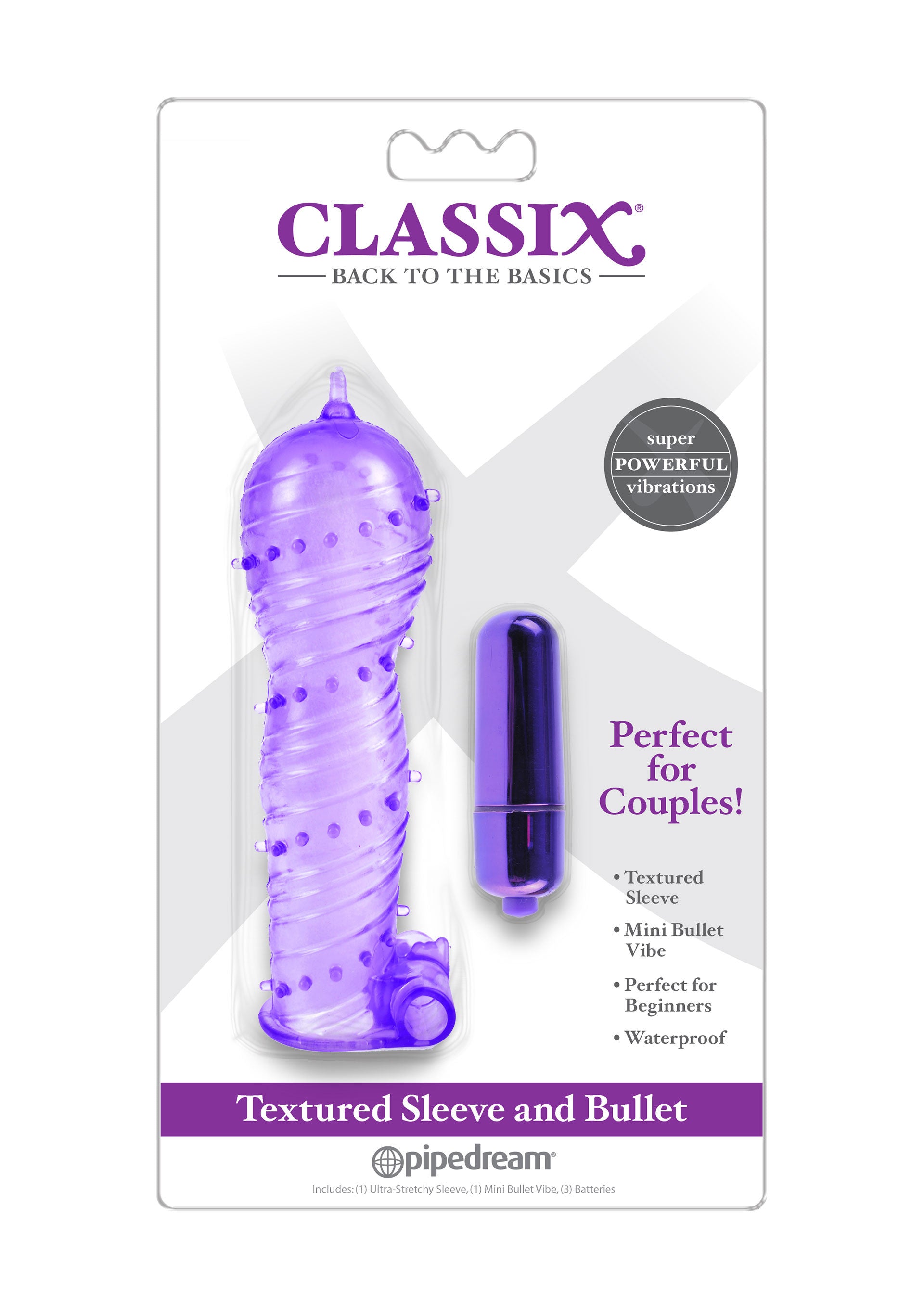Guaina fallica vibrante viola Textured Sleeve & Bullet