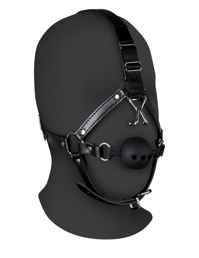 Imbracatura viso con morso Head Harness with Breathable Ball Gag and Nose Hooks Black