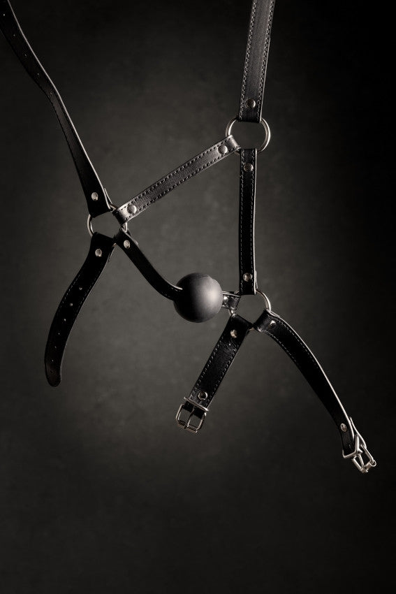 Imbracatura viso con morso Head Harness with Solid Ball Gag Black