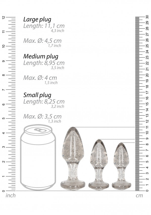 L'azione anale orgasmica è ciò che stai cercando? I nostri scintillanti butt plug anali in acrilico promettono di non deludere. Il set offre una varietà di 3 dimensioni diverse, progettate per offrire comfort, facilità di inserimento e massimo piacere. Rilassati e goditi il piacere più appagante anale, da solo o con il tuo compagno di giochi.
