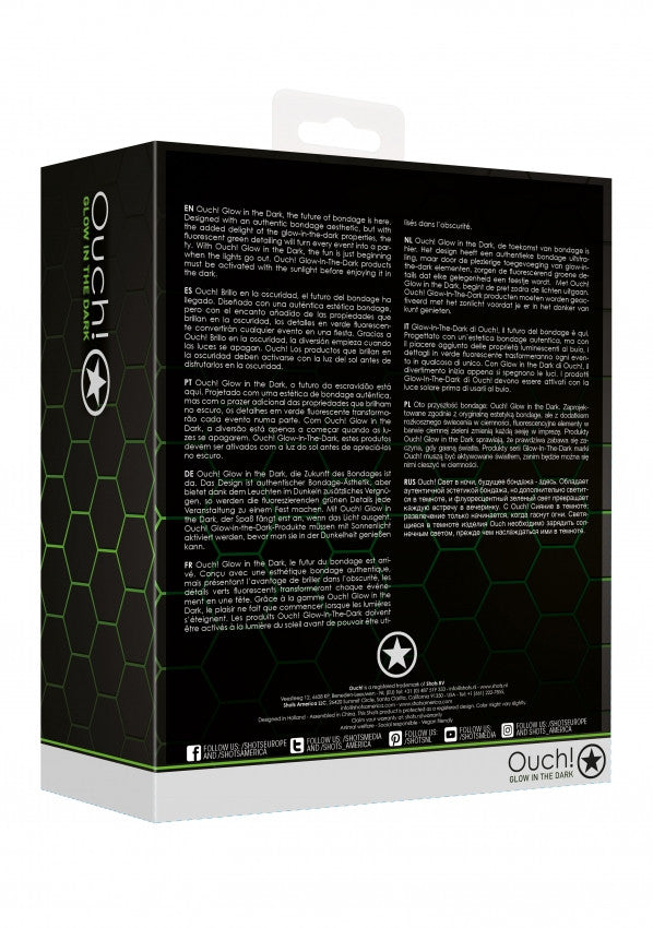 Glow-In-The-Dark di Ouch!, il futuro del bondage è qui. Progettato con un'estetica bondage autentica, ma con il piacere aggiunto delle proprietà luminescenti al buio, i dettagli in verde fluorescente trasformeranno ogni evento in qualcosa di unico. L'azione anale orgasmica è ciò che stai cercando? Questo plug anale che si illumina al buio promette di non deludere. Rilassati e goditi il piacere anale più appagante della tua vita, da solo o con il tuo compagno di giochi. Basta un po' di lubrificante e sei pronto. I prodotti Glow-In-The-Dark di Ouch! devono essere attivati con la luce solare prima di usarli al buio.