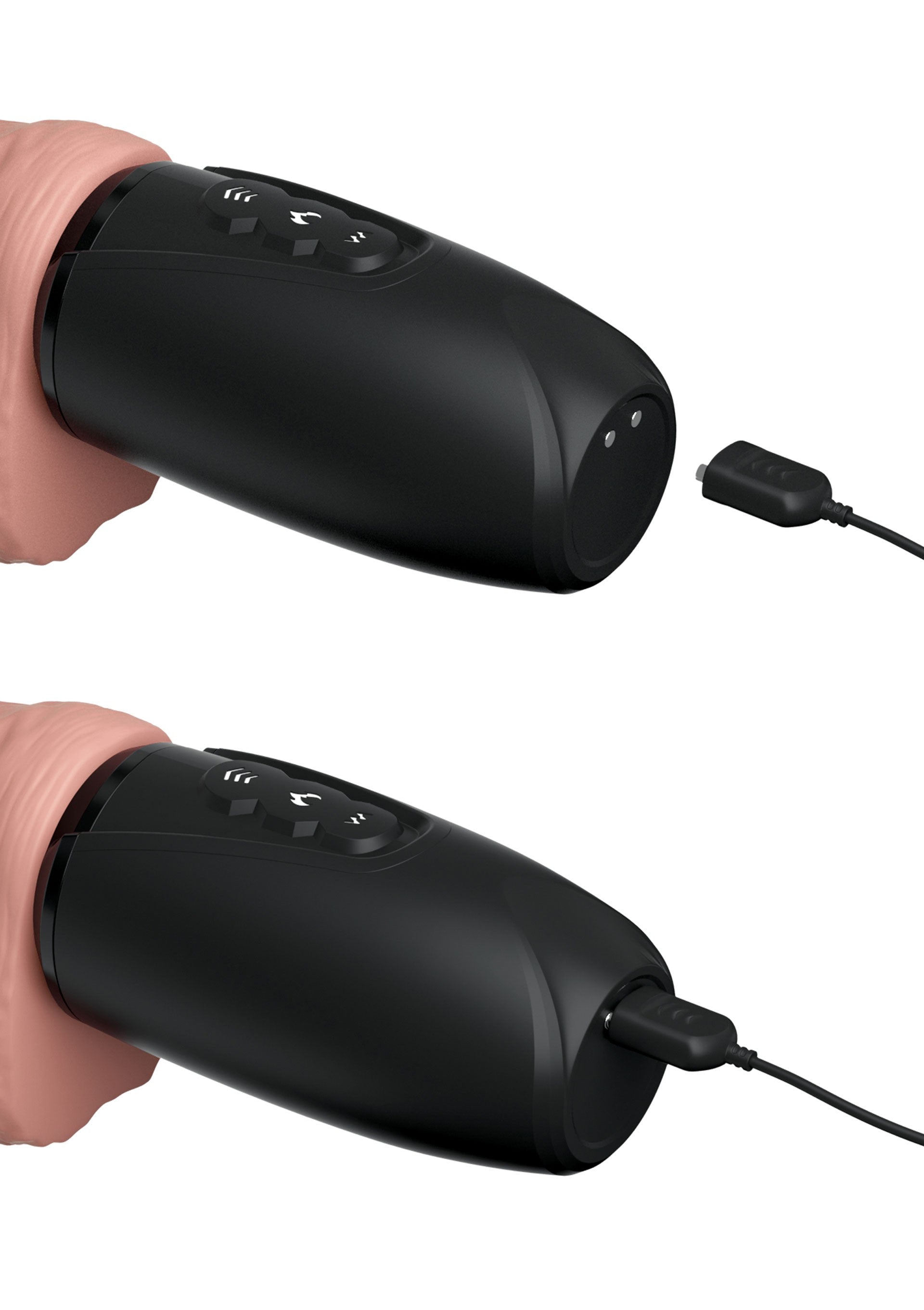 Senti la differenza! Il King Cock Plus Thrusting Cock With Balls è davvero una tripla minaccia che presenta un movimento di spinta azionato da pistoni profondi 1 ', riscaldamento interno fino alla temperatura corporea in pochi minuti e potenti vibrazioni stimolanti per la massima esperienza. Il piacere di spinta è progettato per essere naturalmente reattivo, massaggiando ogni tuo movimento, veloce o lento. La semplice pressione di un pulsante attiva le 7 funzioni uniche del motore vibrante, che è strategicamente posizionato sulla punta del Thrusting Cock per un piacere preciso internamente ed esternamente. Per una stimolazione ottimale, la vibrazione dinamica combinata con un'azione di spinta reattiva e il riscaldamento interno creano ogni volta risultati orgasmici esplosivi!