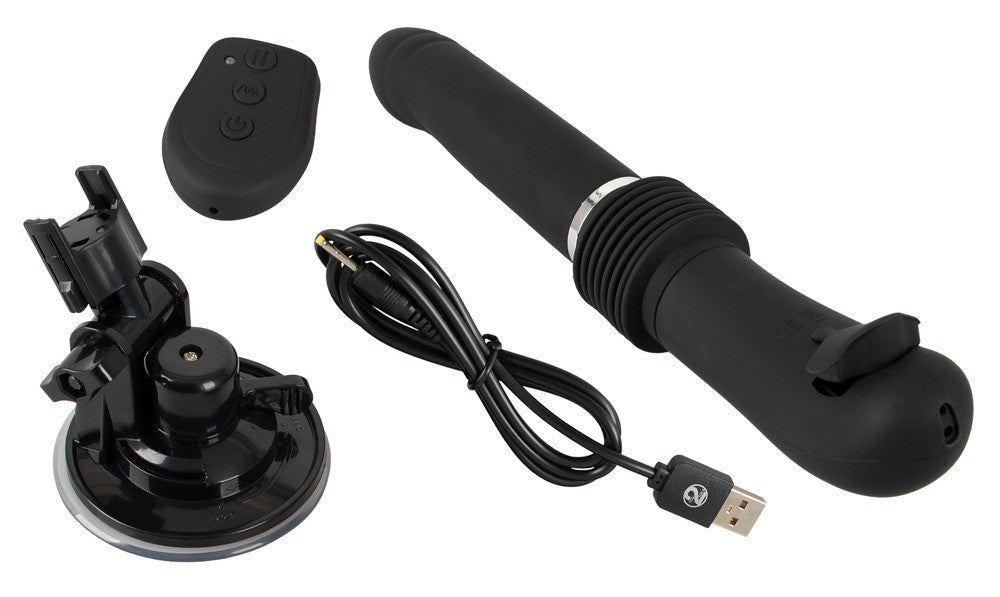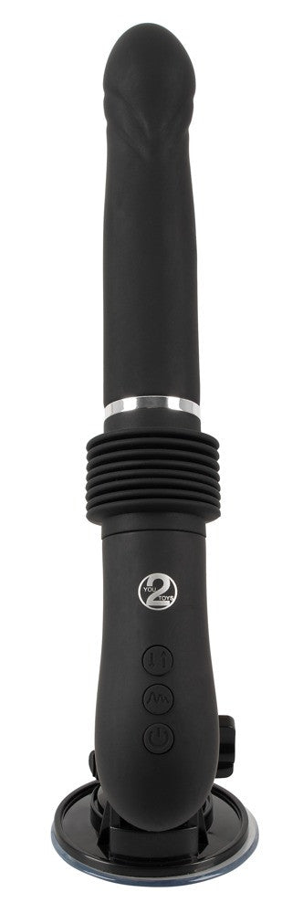 Vibratore d'urto RC Fucking Machine 2.0 di You2Toys con base a ventosa rimovibile e regolabile nell'angolo che si attacca saldamente e in modo sicuro a qualsiasi superficie liscia per il piacere a mani libere.