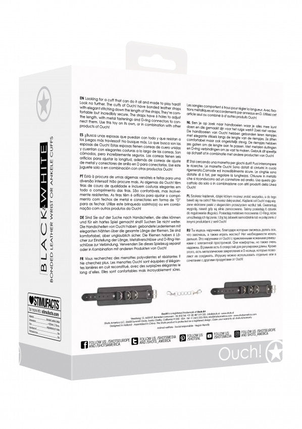 Stai cercando una manetta per giochi duri? Puoi interrompere le ricerche. Le manette Ouch! Sono dotate di cinghie in pelle di ottima qualitá e manifattura. Comode ed incredibilmente sicure. Le cinghie sono dotate di 6 fori, per regolare la lunghezza. Chiusure in metallo che si riconducono ad un connetore ad anello. Usa questo giocattolo da solo o in combinazione con altri prodotti della Linea Ouch!