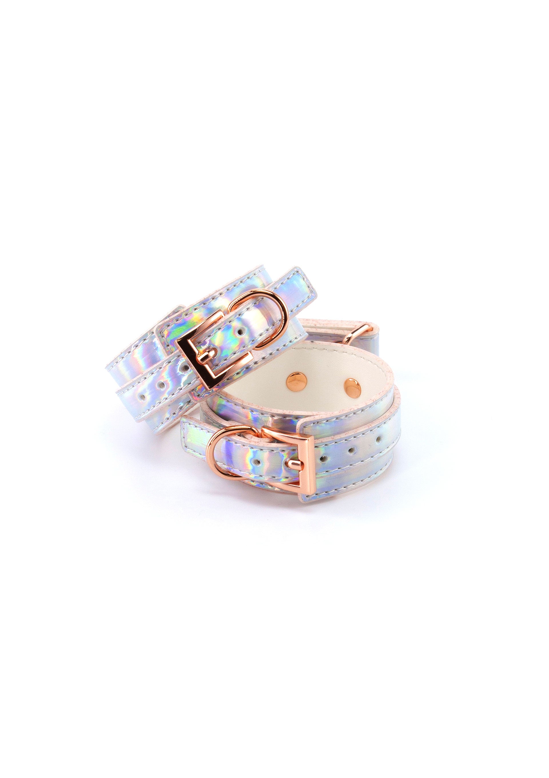 Illumina la notte con le restrizioni olografiche di Cosmo. Accentuato con hardware senza nichel in oro rosa e completamente regolabile per una vestibilità universale. Realizzato in vinile facile da pulire.