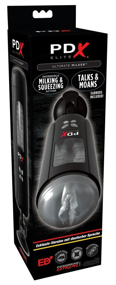 Più che masturbazione! Elegante masturbatore con 10 livelli di mungitura e 5 velocità. La funzione audio, che seduce l'utente con diversi suoni e detti in tedesco, è particolarmente eccitante. Si attiva non appena vengono collegate le cuffie in dotazione. Il canale del piacere della manica rimovibile è dotato di intensi solchi e scanalature stimolanti. Un altro punto culminante è la staffa a parete integrata, che consente il piacere delle mani libere, mentre la finestra nel masturbatore consente una visione emozionante di ciò che sta accadendo. Include cavo di ricarica USB e 3 anelli per pene di diversi diametri.