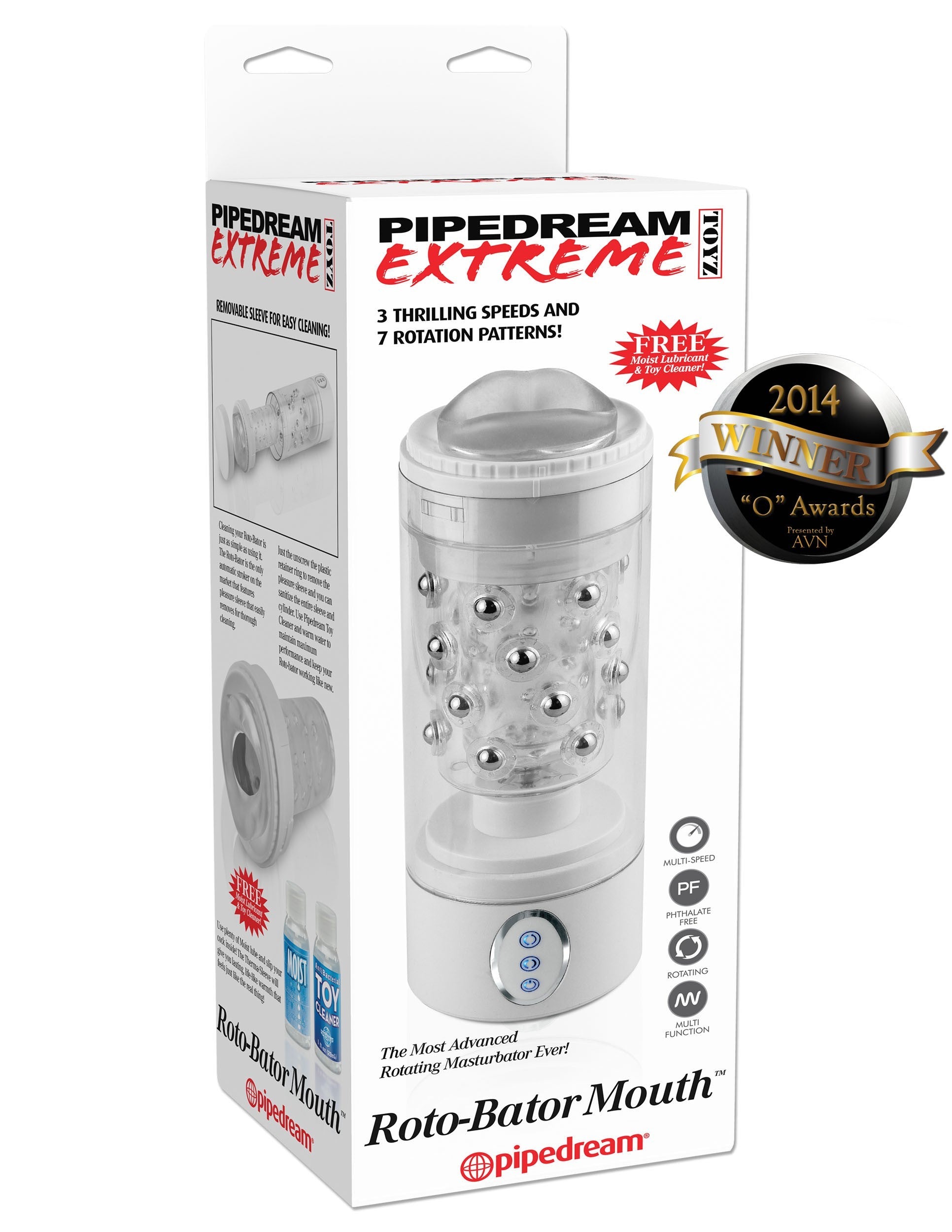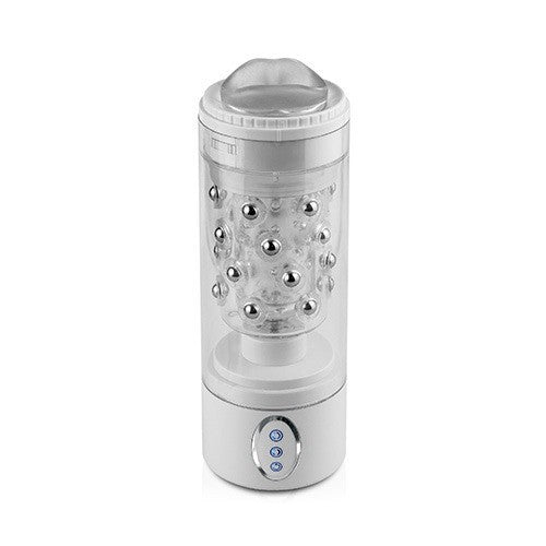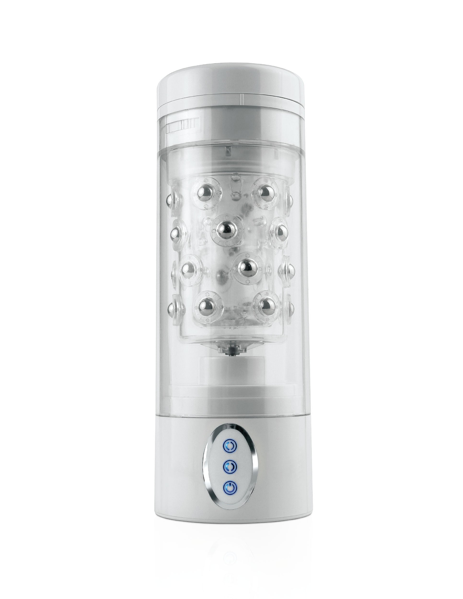 Masturbatore di Tpe, termosensibile e privo di ftalati, simula il calore corporeo, grazie alla sua bocca e al motore che fa ruotare le sfere intorono al pene, anche con funzione inverti rotazione, con differenti velocità .