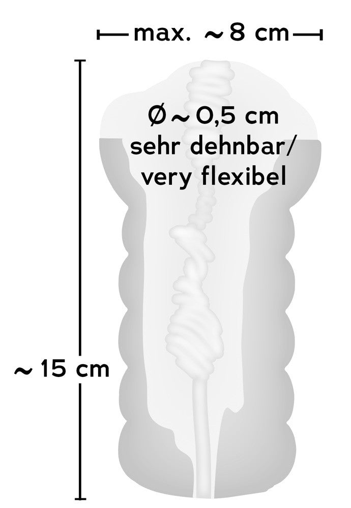 Per l' hand-job grippante! Masturbatore a forma di vagina in custodia flessibile con scanalature di presa. Il canale del piacere fatto di materiale Nature Skin simile alla pelle è dotato di nodi di stimolazione distintamente strutturati all'interno, che assicurano un massaggio intenso ed efficace per l'orgasmo durante l' hand-job. La pressione può essere facilmente variata per una sensazione di presa deliziosa grazie al barattolo flessibile. Il masturbatore è aperto sul retro per una facile pulizia. Lunghezza totale 15 cm, Ø interno stretto ed elastico. Peso 375 g. TPE.
