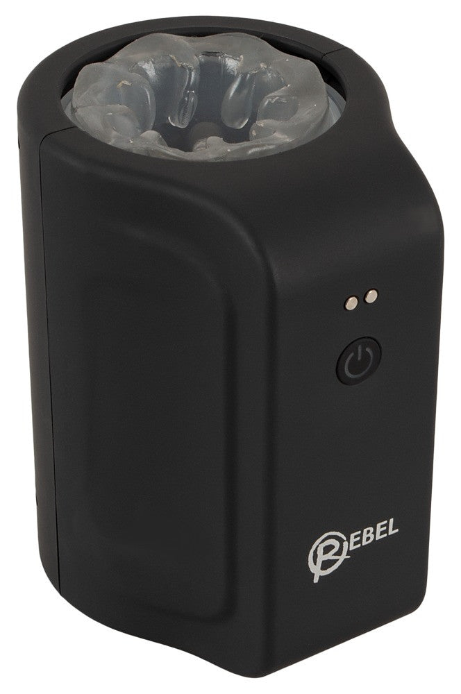 Maneggevole masturbatore rotante di Rebel con manica morbida rotante all'interno. Innumerevoli nodi delicatamente setosi girano intorno al pene fino al brillante finale: una sega automatica stimolante di classe a sé stante!
