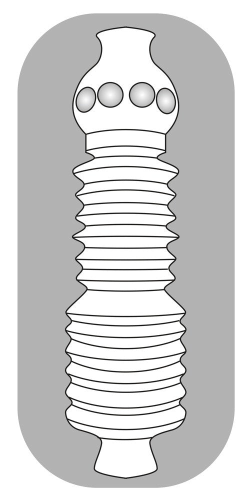 Masturbatore trasparente extra maneggevole con eccitante struttura di scanalature e nubi all'interno. Il masturbatore elasticizzato ha anche una superficie nodosa all'esterno, così non scivolerà via anche durante gli alti e bassi selvaggi.