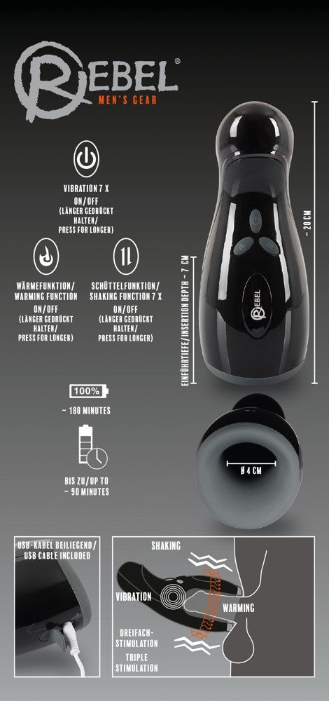 Cosa c'è di speciale in questo giocattolo. Questo masturbatore segna con 3 funzioni speciali, perché non solo vibra, ma vizia anche con un movimento su e giù intenso e la piacevole funzione di riscaldamento. Quindi ottieni una sensazione super realistica e puoi concentrarti su te stesso. Grazie alla straordinaria forma del masturbatore è estremamente ergonomico e si adatta bene alla mano.