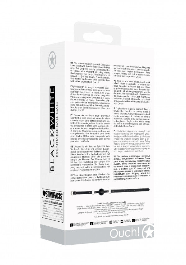 Ti piacciono i giochi estremi? Tieni a bada il tuo amato con questo morso a forma di palla. Cinghie in ottima pelle , con eleganti cuciture su tutta la superficie. Dotato di 10 fori per regolare la lunghezza. Taglia unica. Usa il morso da solo o in combinazione con altri prodotti della Linea Ouch!