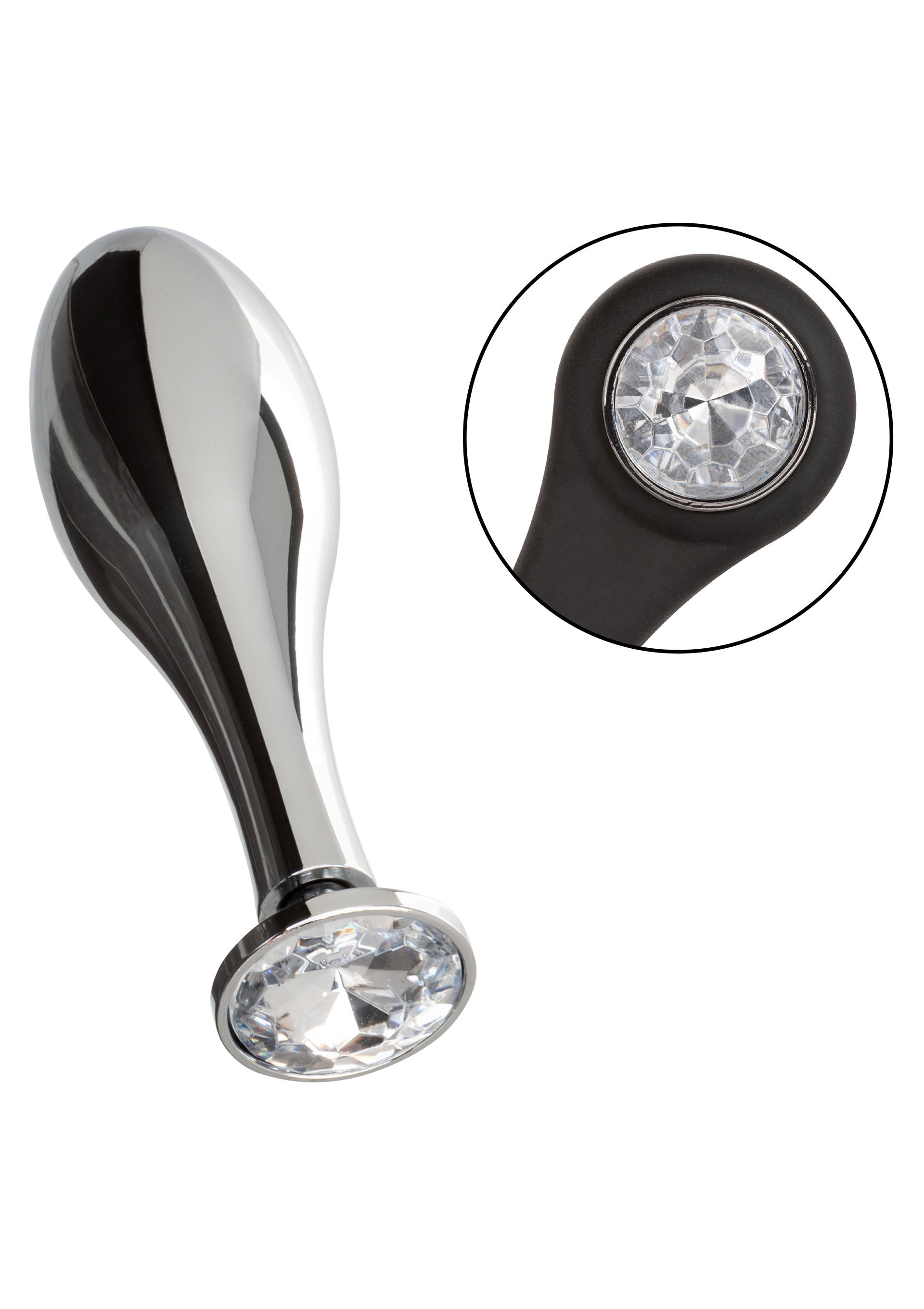 Informazioni aggiuntive : Potenziatore in silicone elastico e resistente con sonda metallica a goccia liscia e senza giunture, Design multifunzionale per un sostegno e un potenziamento personalizzato, Il plug e l'enhancer in metallo si smontano per una facile pulizia, Il metallo trattiene il calore o il freddo per giocare con la temperatura, Accento di gemme scintillanti, Non si appanna e non contiene nichel.