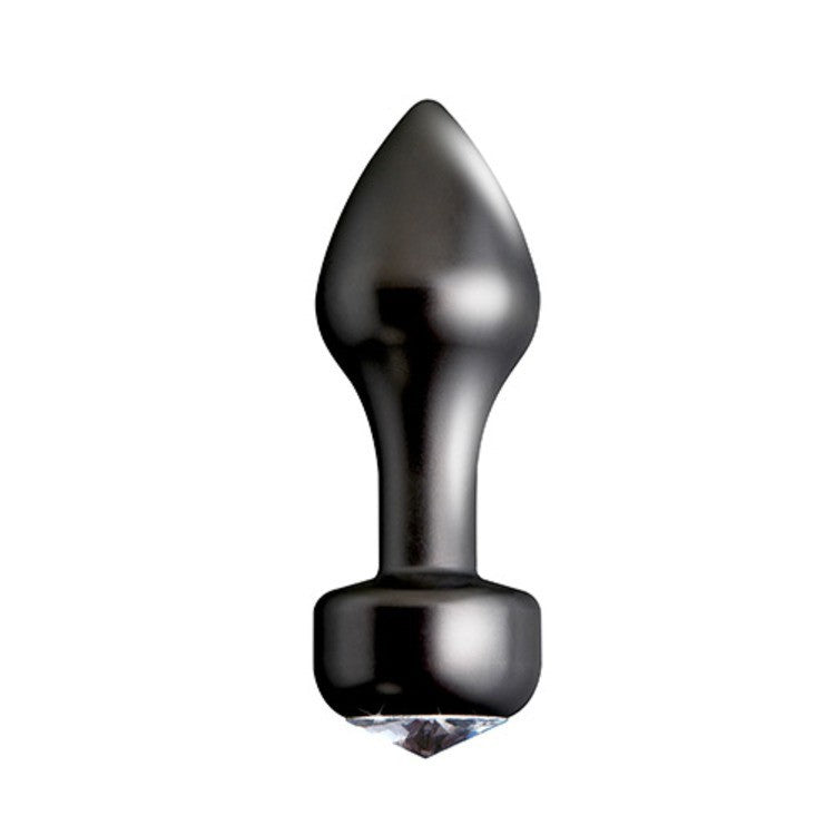 Plug anale realizzato in alluminio nero . Rifinito con superficie liscia e arrotondata . Senza ftalati con base ampia per un utilizzo sicuro . Il Plug anale Limited Edition e rifinito nella parte inferiore da un diamente di cristallo con taglio a forma di diamante.