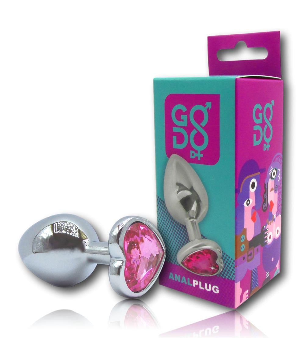 Questo plug medio in alluminio del marchio Godo di + presenta una superficie liscia con un gioiello a forma di cuore trasparente, incastonato alla base. Una volta inserito nell’ano il gioiello rimarrà esterno, vestendo di scintillante eleganza, sensualità e in completa sicurezza, il vostro fondoschiena.