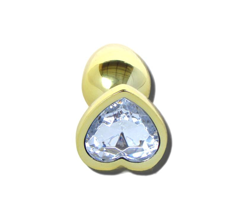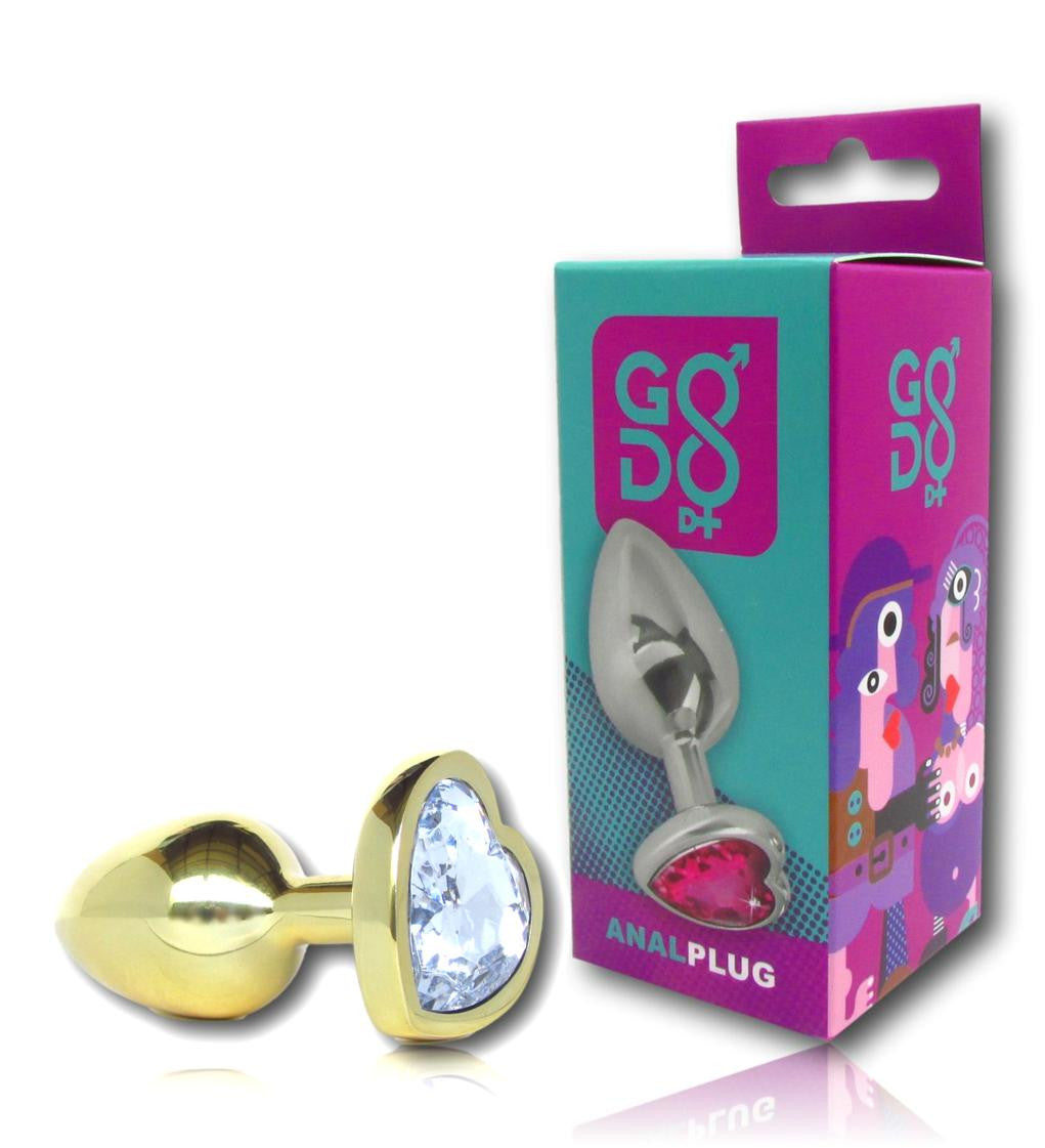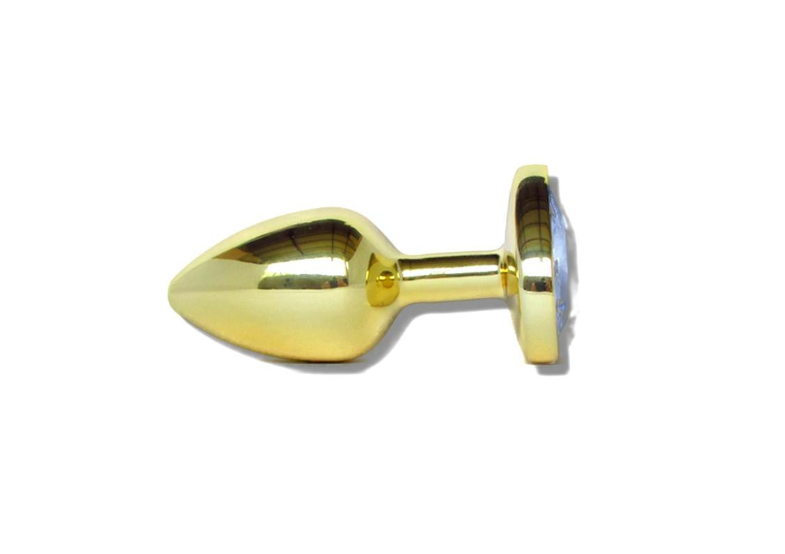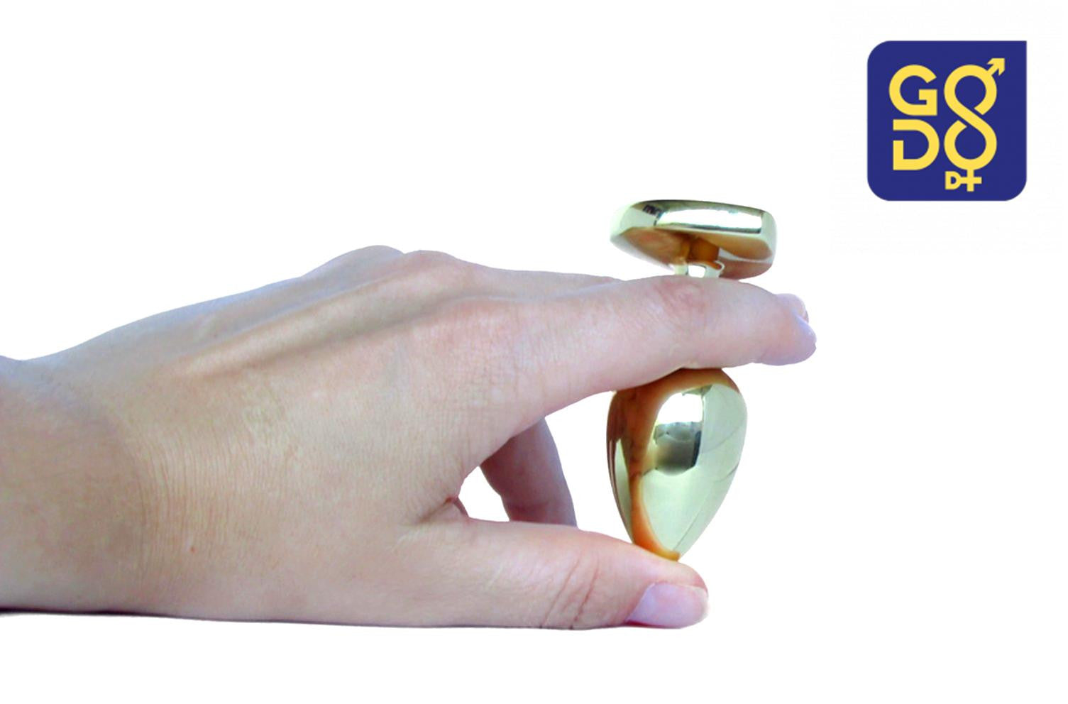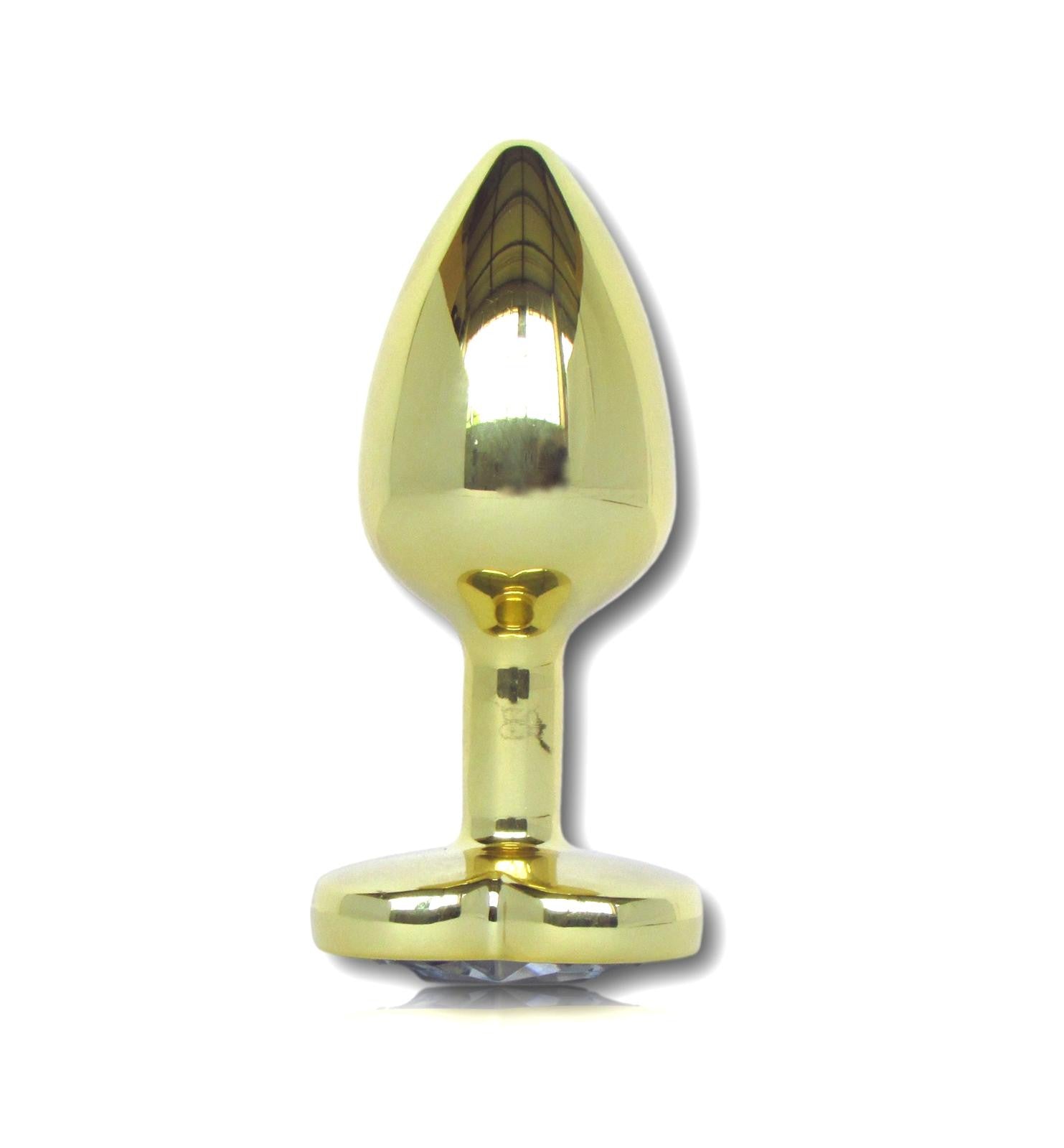 Questo mini plug dorato in alluminio del marchio Godo di + presenta una superficie liscia con un gioiello a forma di cuore trasparente, incastonato alla base. Una volta inserito nell’ano il gioiello rimarrà esterno, vestendo di scintillante eleganza, sensualità e in completa sicurezza, il vostro fondoschiena.