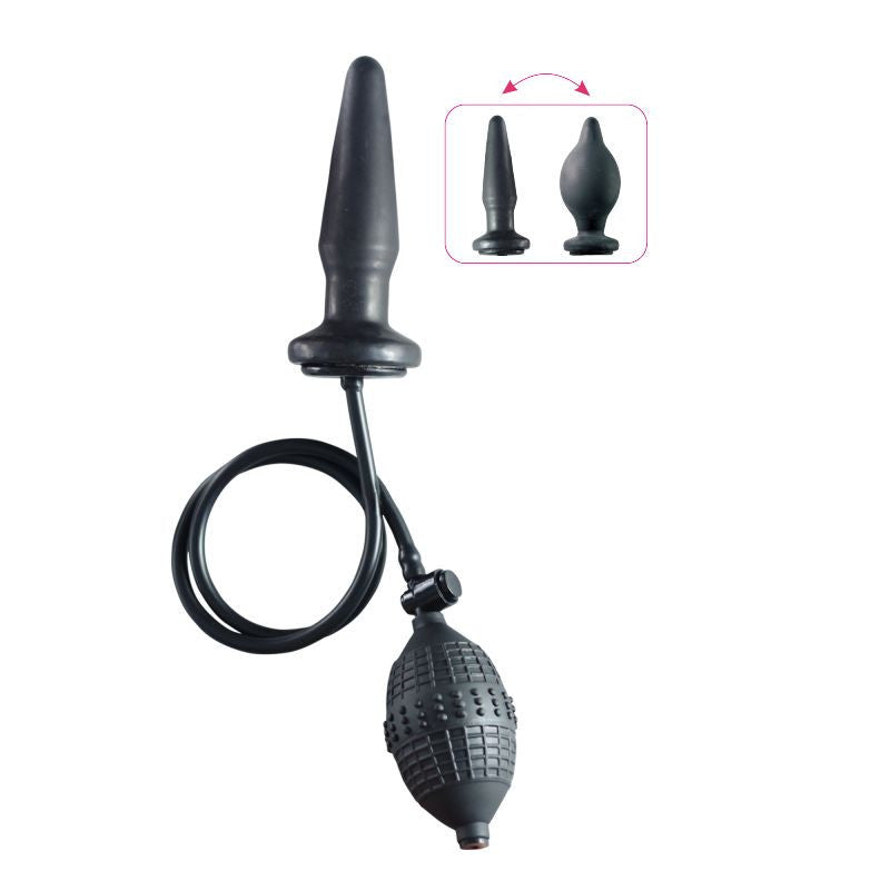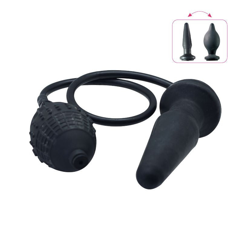 Anal Plug gonfiabile con valvola a rilascio rapido. In PVC ed ABS. Di colore nero. Privo di ftalati. Taglia S (12,3 cm x 3,1).