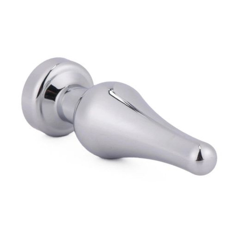 Plug anale in alluminio con un gioiello incastonato alla base. Punta affusolata per un graduale inserimento, facile presa e maneggevolezza. Totalmente liscio e con originale forma conica e dal diametro crescente.