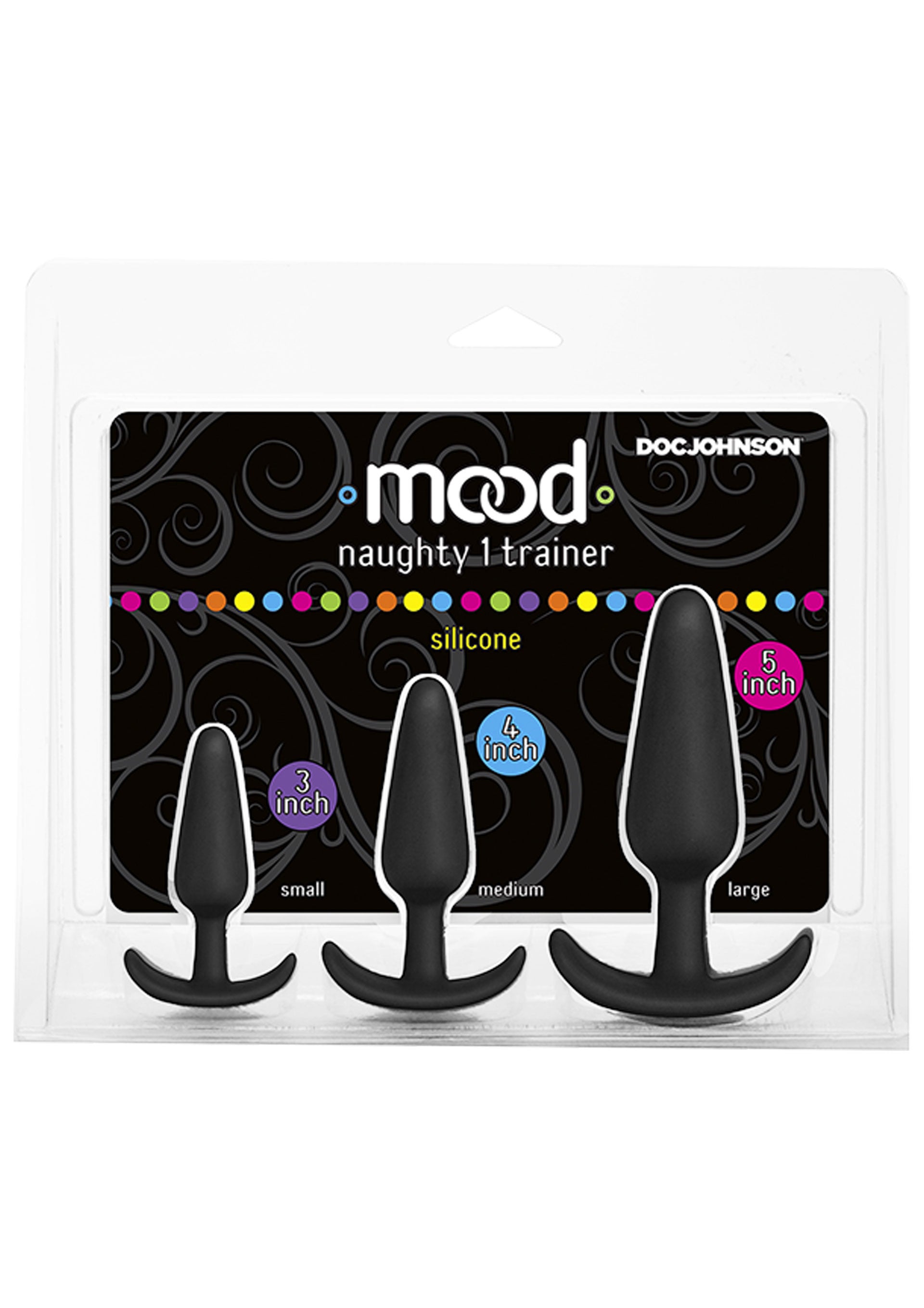 Quanto lo vuoi cattivo? Il Mood Naughty 1 Trainer Set in silicone premium include il nostro bestseller originale Mood Naughty butt plug in tre misure graduate. Misurando 3, 4 e 5 pollici, questo set ha la forma e le dimensioni perfette per aiutare i principianti della porta posteriore ad espandere delicatamente i confini della loro esperienza anale. La classica punta affusolata di Mood Naughty scivola dentro, e il materiale solido ma flessibile e la base a dondolo curva rendono questi plugs comodi e sicuri per un uso prolungato.