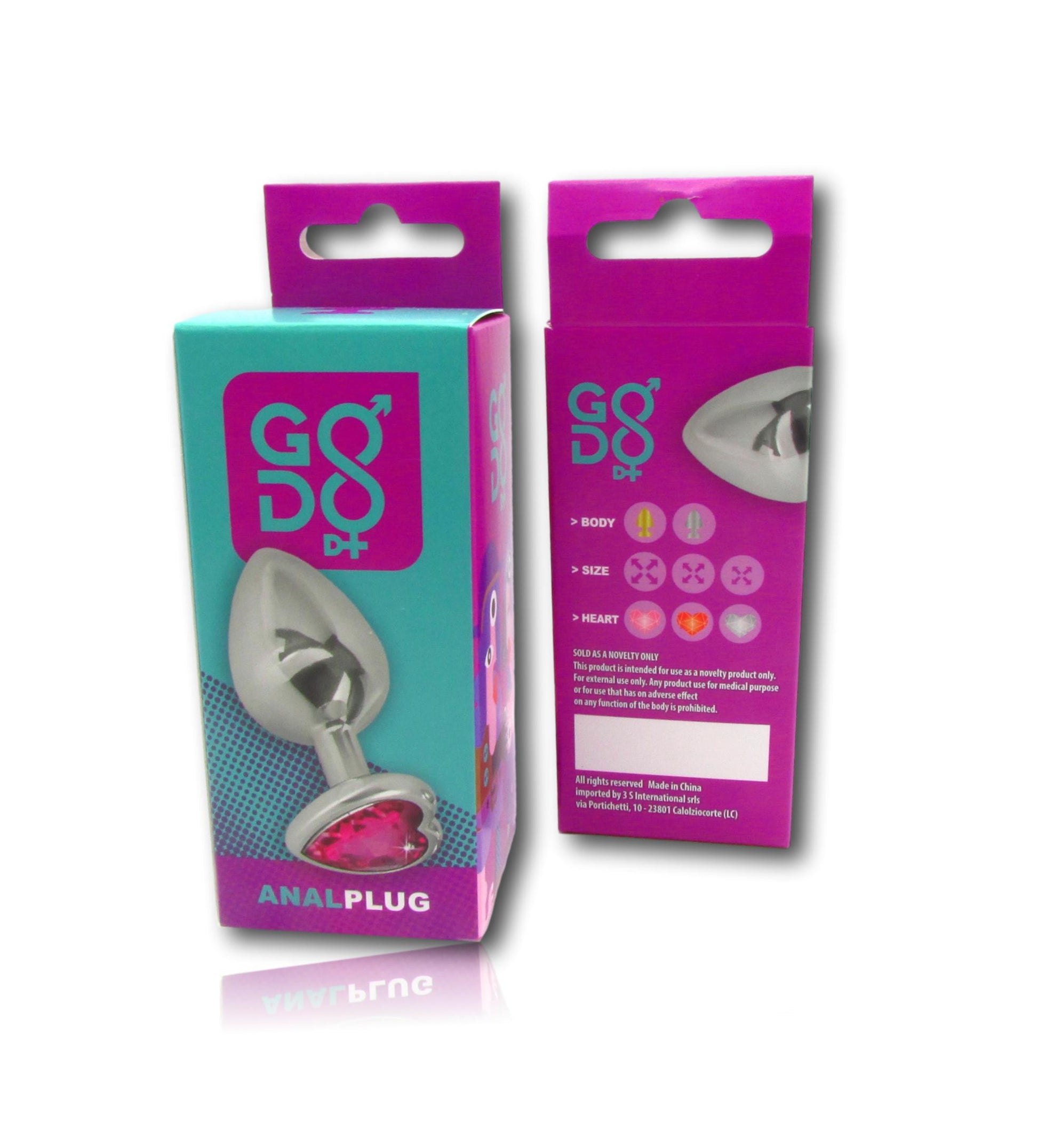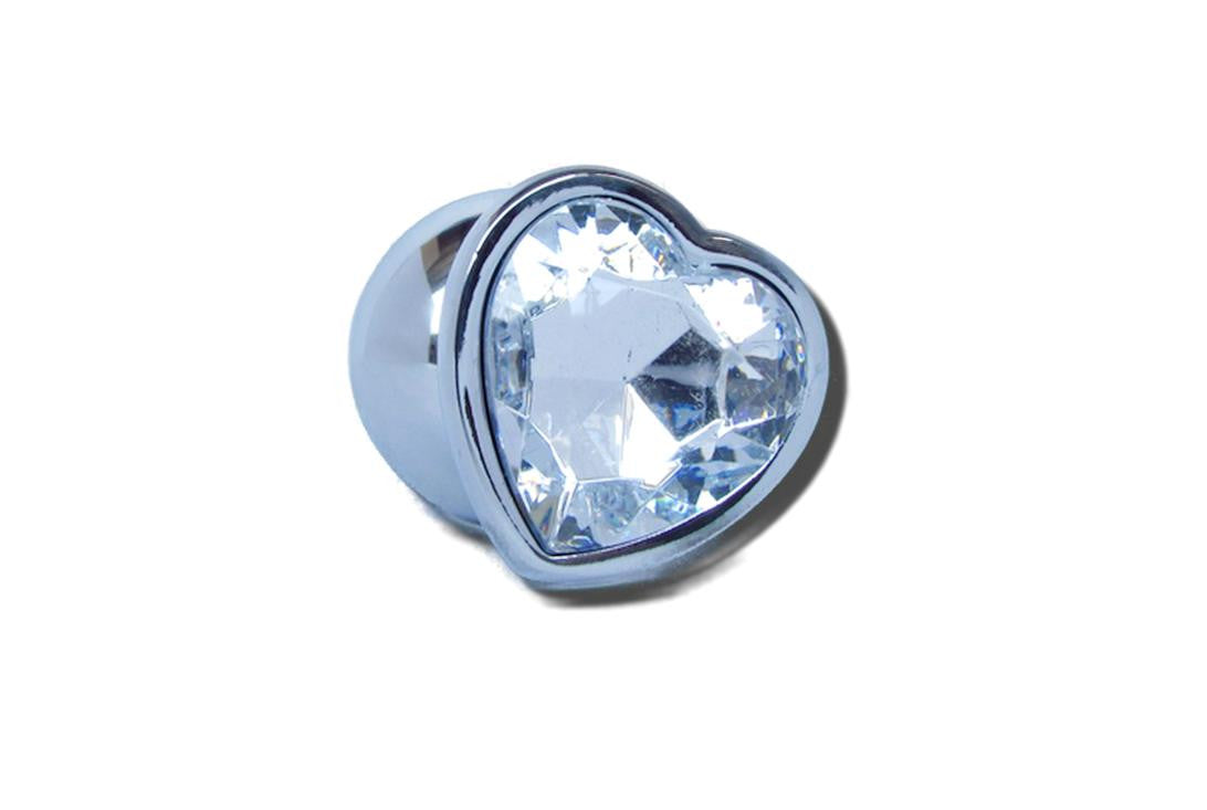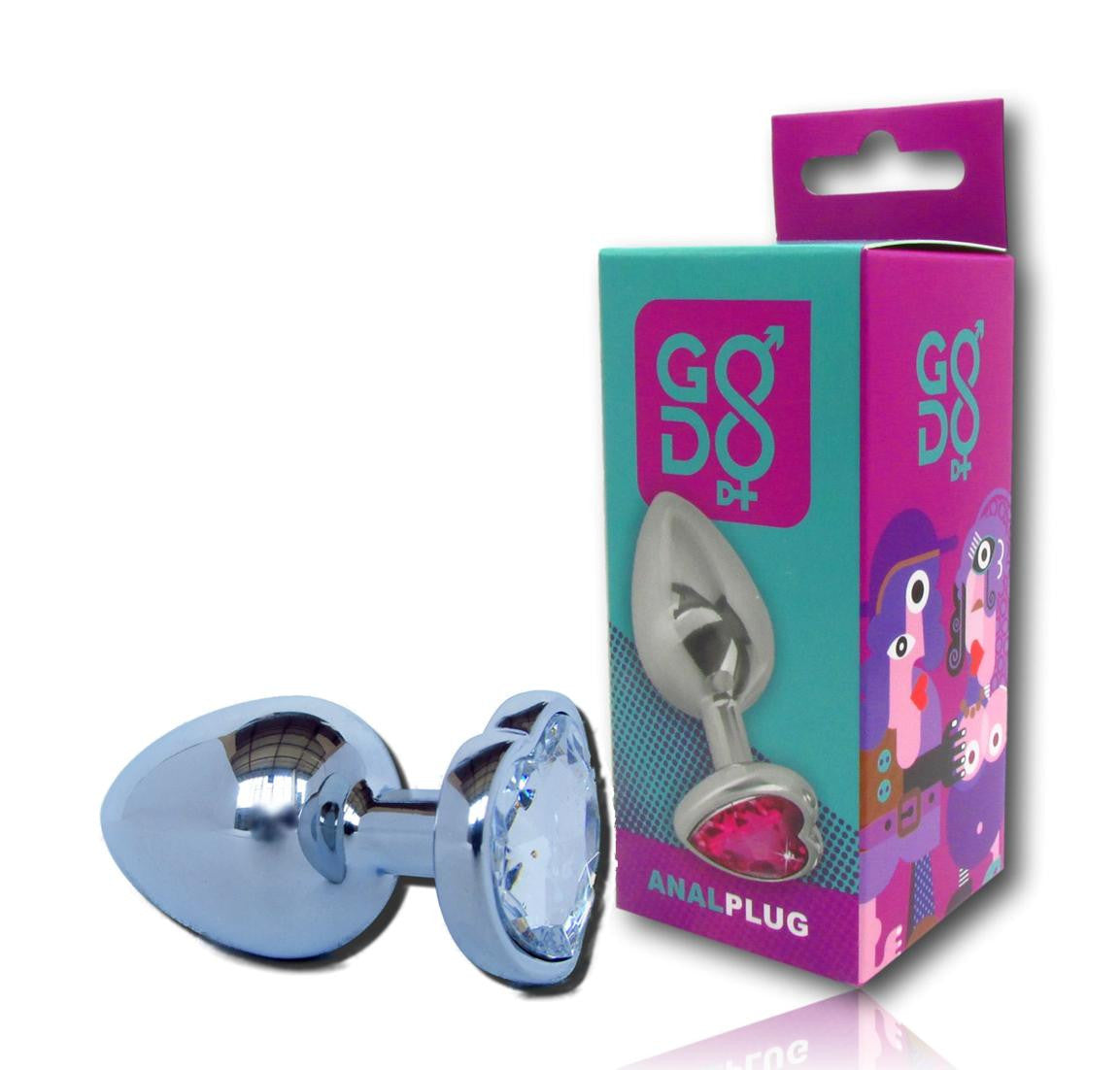 Questo plug grande in alluminio del marchio Godo di + presenta una superficie liscia con un gioiello a forma di cuore trasparente, incastonato alla base. Una volta inserito nell’ano il gioiello rimarrà esterno, vestendo di scintillante eleganza, sensualità e in completa sicurezza, il vostro fondoschiena.