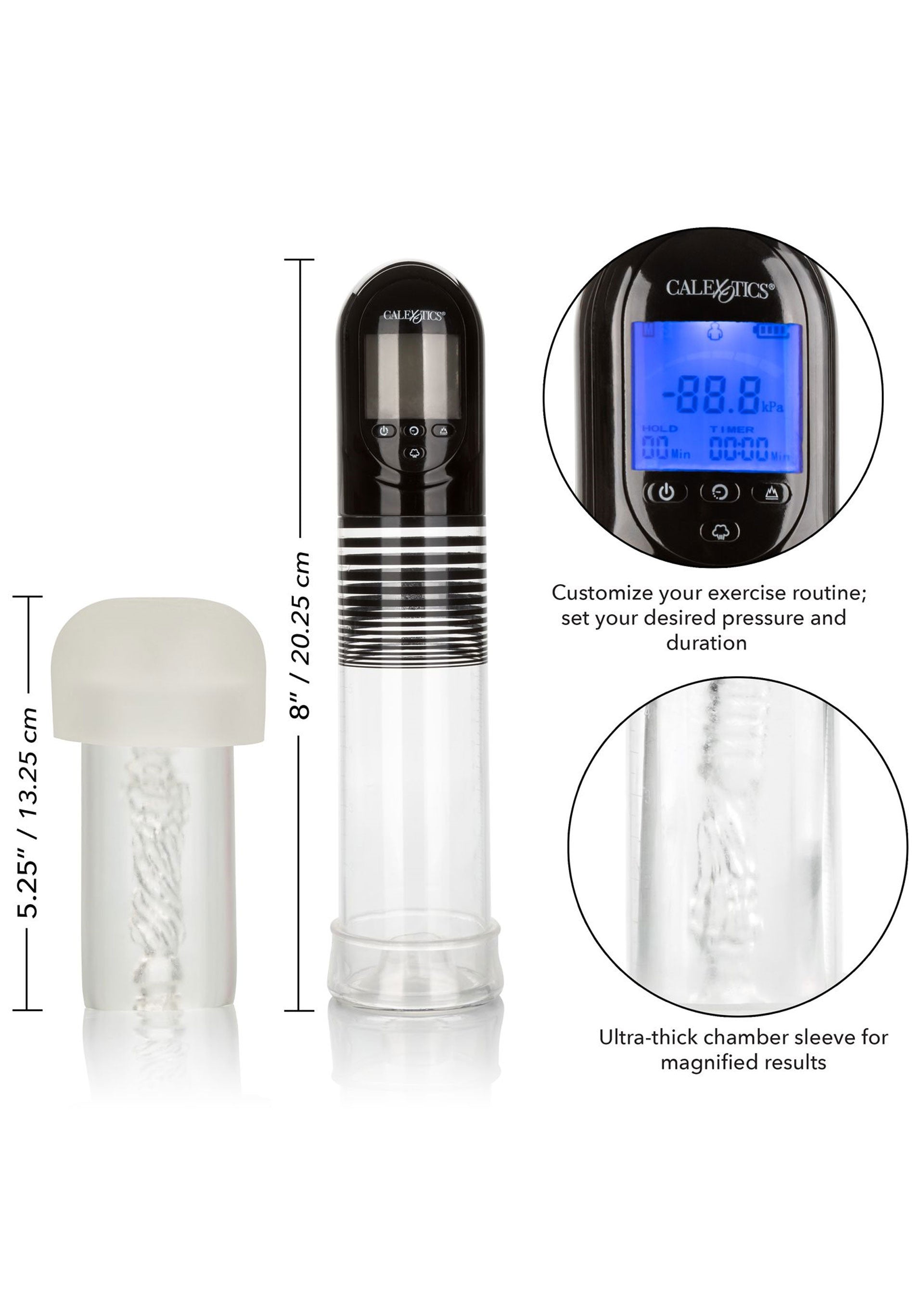 Massimizzate il vostro strumento di piacere con Optimum™ Series Advanced Automatic Smart Pump, una pompa per il pene elegante e resistente realizzata per un'aspirazione superiore e per migliorare le prestazioni. Aumentate la resistenza, migliorate la capacità di resistenza e amplificate la vostra verga con questa pletora di modalità di esercizio personalizzabili. Utilizzate i pulsanti easy-touch e lo schermo LED per godervi il pompaggio manuale o impostate la pressione e la durata per un allenamento fino a 20 minuti.