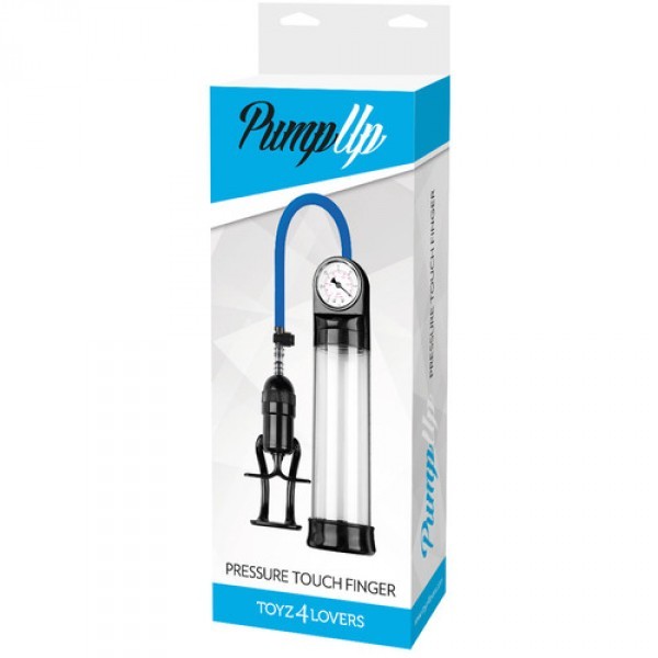 Pompa sviluppatore per pene a pompa pump up pressure touch finger con barometro è uno sviluppatore a pompa manuale con manomentro. Con Pump UP Pressure Touch l?erezione sara' sempre piu' forte! Osserva la crescita del pene attraverso il cilindro trasparente in ABS con la guaina per l?inserimento in morbido Tpr per una tenuta ermetica, che permette di visionare in tempo reale i progressi del pene, con un efficace manometro, funzionale ed elegante e una semplice scala numerica. L'azione della Pump UP Pressure Touch è facile, veloce e sicura grazie alla semplice pressione del pulsante per azionarla e ad un pulsante della valvola di rilascio rapido che consente di avere una pressione personalizzabile. La pompa accresce il flusso di sangue al pene per l'erezione, aumentandone la dimensione e la soddisfazione sessuale. Priva di ftalati. LUNGHEZZA TUBO FLESSIBILE 25,90 CM