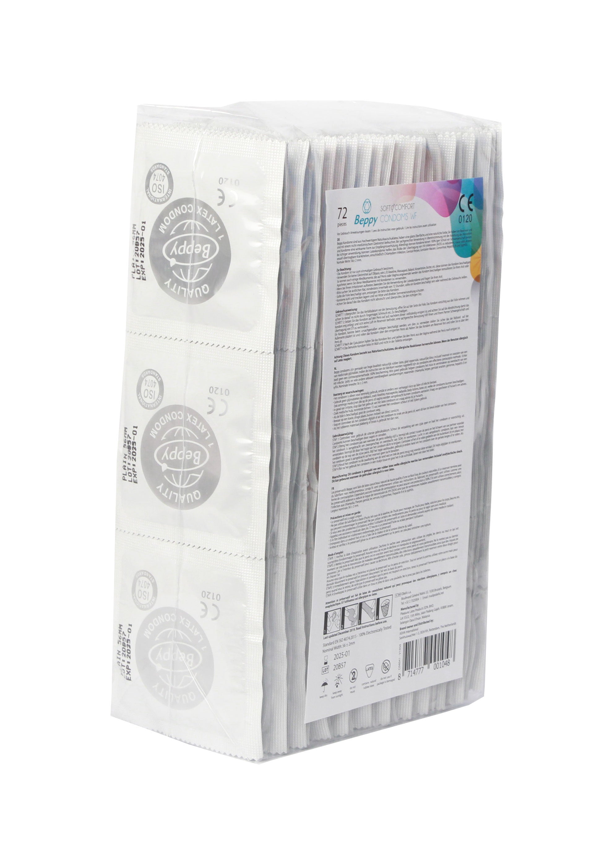 Questi preservativi sono di qualità professionale. Un buon preservativo che si srotola facilmente, è comodo e crea una sensazione naturale. I preservativi Beppy sono realizzati in lattice di gomma naturale e forniscono un'eccellente protezione. Hanno un serbatoio contenente lubrificante siliconico non spermicida.