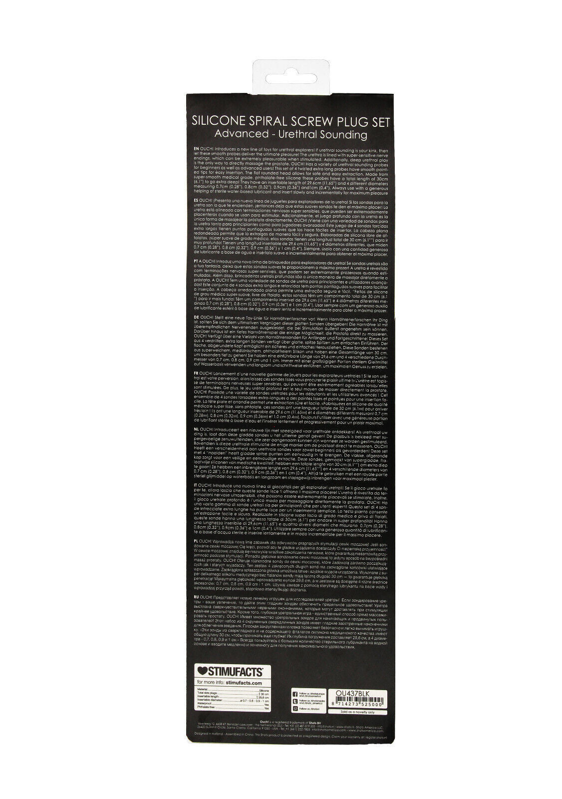 OUCH! Presenta una nuova linea di giocattoli per gli esploratori dell'uretra! Se l'esplorazione dell'uretra è la vostra passione, lasciate che queste sonde lisce vi regalino il massimo del piacere! L'uretra è rivestita di terminazioni nervose super-sensibili, che possono essere estremamente piacevoli se stimolate. Inoltre, il gioco uretrale profondo è l'unico modo per massaggiare direttamente la prostata. OUCH! ha una varietà di sonde uretrali per i principianti e per gli utenti più esperti! Questo set di 4 sonde extra lunghe e ritorte ha punte lisce e appuntite per un facile inserimento. La testa piatta e arrotondata consente un'estrazione facile e sicura. Realizzate in silicone super-liscio di grado medico, privo di ftalati, queste sonde hanno una lunghezza totale di 30 cm (6,1) per andare in profondità! Hanno una lunghezza inseribile di 29,6 cm (11,65“) e 4 diversi diametri che misurano 0,3 cm (0,12”), 0,4 cm (0,16“), 0,5 cm (0,2”) e 0,6 cm (0,24). Utilizzare sempre con un'abbondante dose di lubrificante sterile a base d'acqua e inserire lentamente e gradualmente per ottenere il massimo piacere.