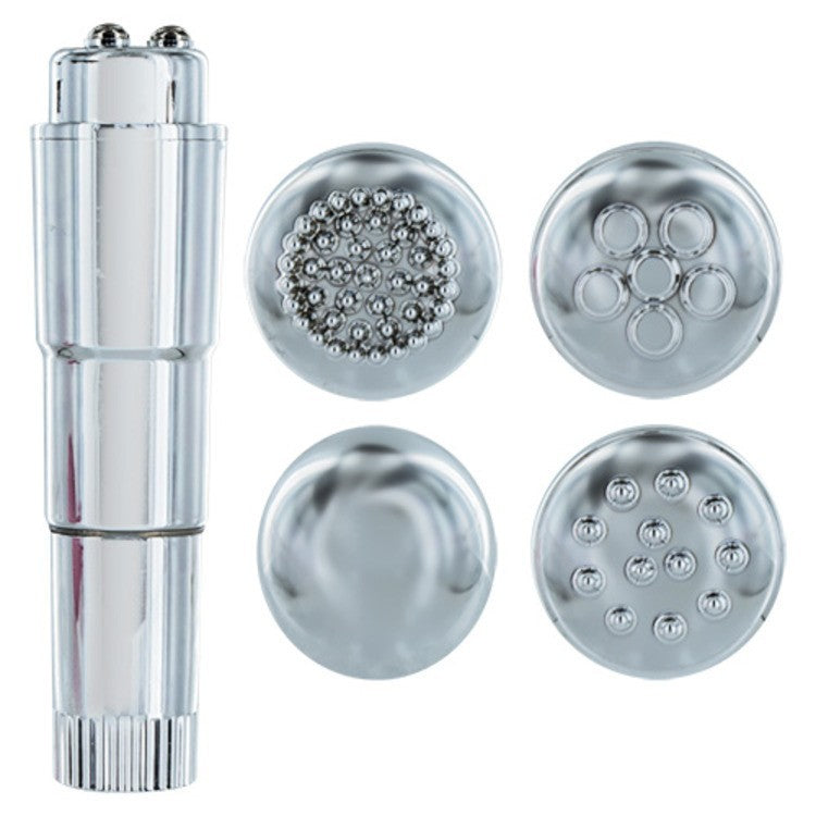Stimolatore per clitoride multitestina silver sweepy .Estremamente Discreto, molto efficace e potente? Non è proprio quello che vi serviva? Con questo stimolatore vaginale puoi decidere anche di quale piacere hai voglia. Grazie alle sue 4 testine intercambiabili, infatti, puoi scegliere di che stimolazione vuoi impazzire, di quali orgasmi ti vuoi inebriare, vibrando di piacere!