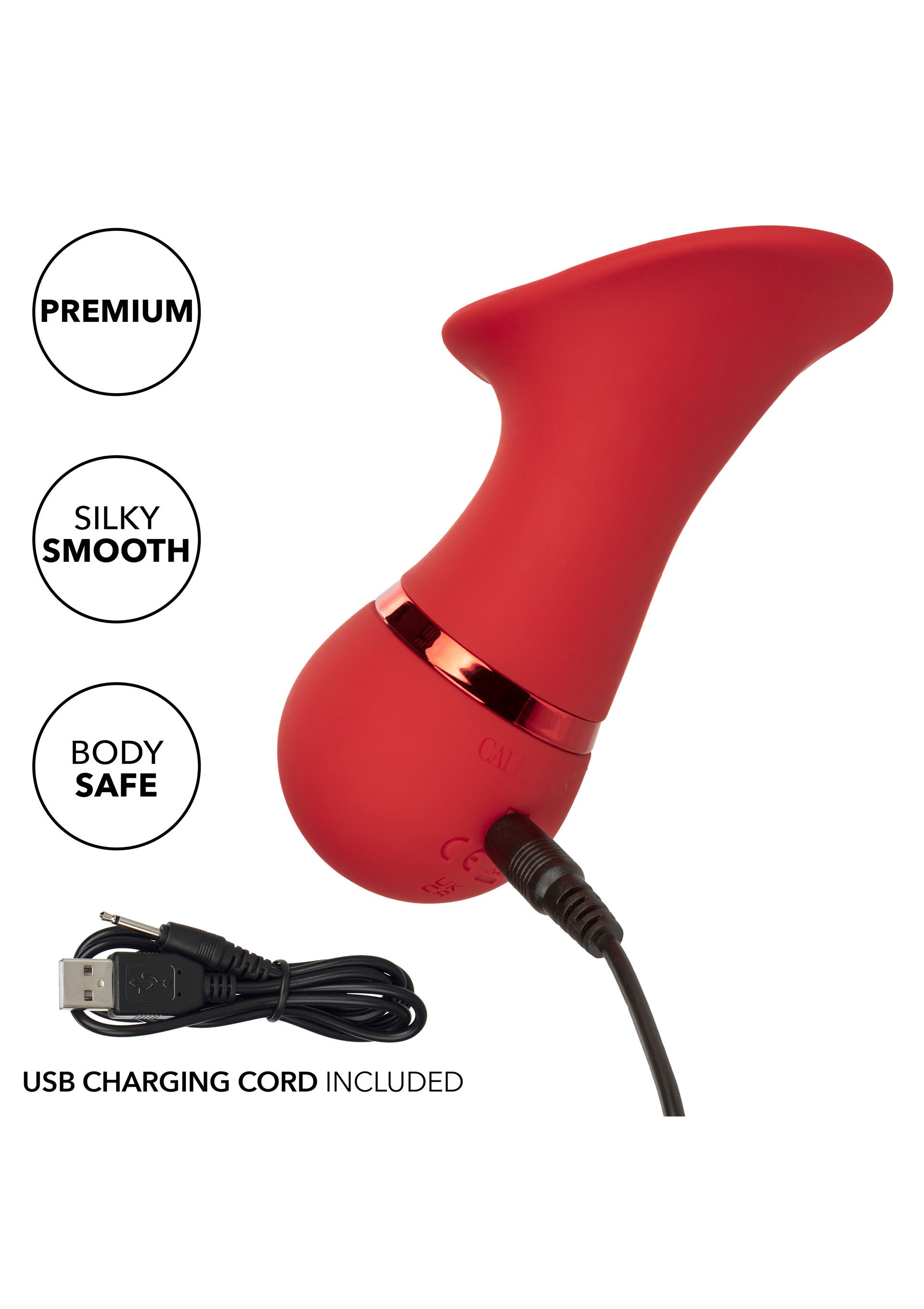 Il sensuale French Kiss Seducer è pronto per essere infilato nella borsa o nella borsa da notte per un piacere orgasmico in movimento. Il massaggiatore compatto è sicuro di offrire un potente piacere tremolante con 12 funzioni sensuali di vibrazioni svolazzanti attraverso la punta a forma di lingua. La paletta a pieno contatto e il rompicapo con linguetta svolazzante sono realizzati per adattarsi perfettamente ai tuoi punti di piacere più intimi. Il morbido silicone flessibile e il corpo dalla forma sensuale ti consentono di offrire puro piacere da quasi un'angolazione.