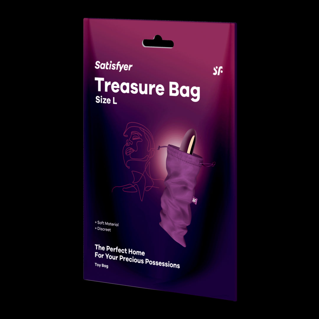 Realizzate in materiale morbido e resistente, le nostre borse per tesori tengono al sicuro i vostri tesori finché non siete pronti a utilizzarli. Scoprite la casa perfetta per i vostri beni preziosi con le borse del tesoro Satisfyer. La soluzione definitiva per conservare i vostri prodotti del piacere! Disponibile in tre misure: - Taglia M: per piccoli Satisfyer e tesori intimi. - Taglia L: ideale per giocattoli di medie dimensioni come il Pro 2. - Taglia XL: perfetta per le delizie Satisfyer più grandi.
