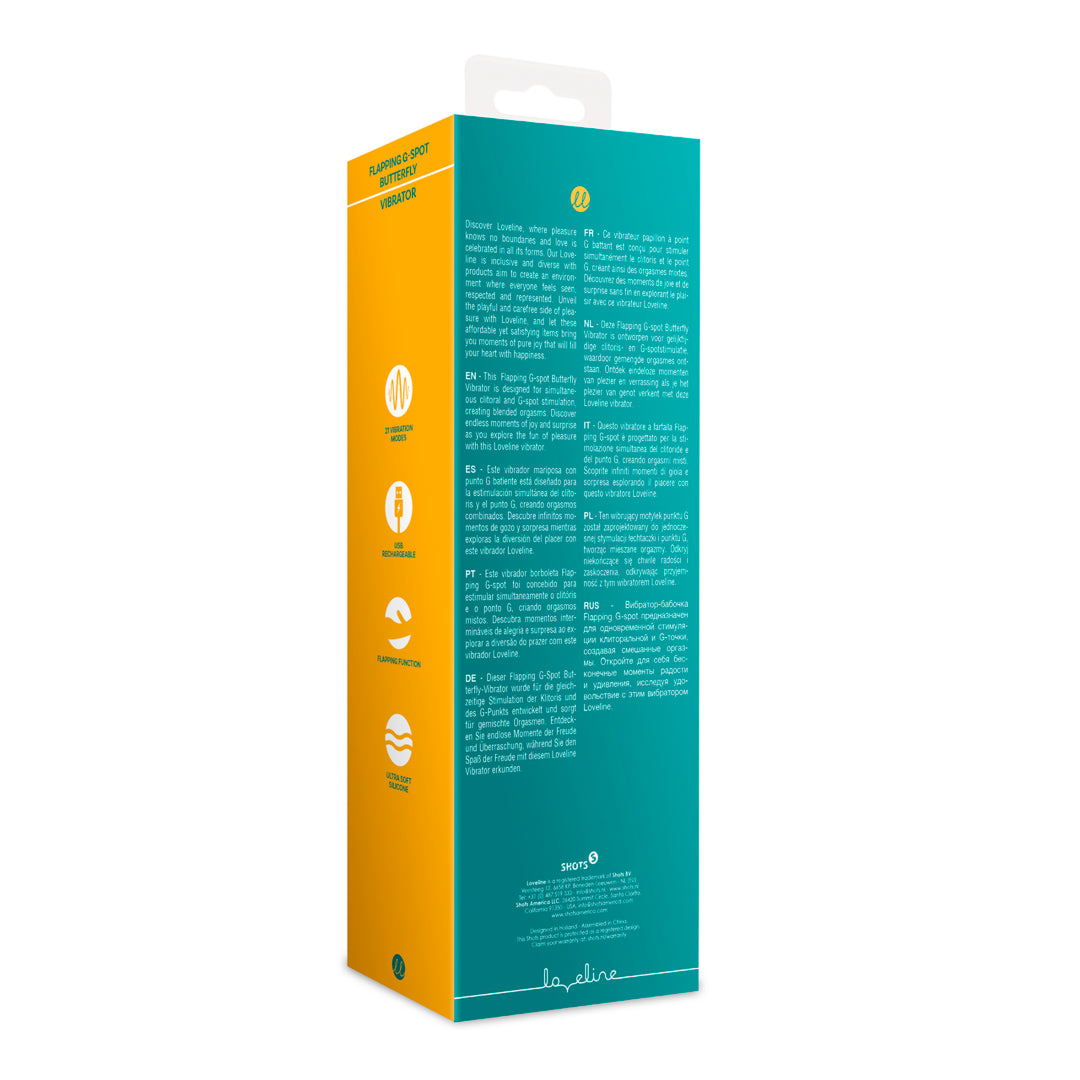 Questo vibratore a farfalla Flapping G-spot è progettato per la stimolazione simultanea del clitoride e del punto G, creando orgasmi misti. Scoprite infiniti momenti di gioia e sorpresa esplorando il piacere con questo vibratore Loveline.